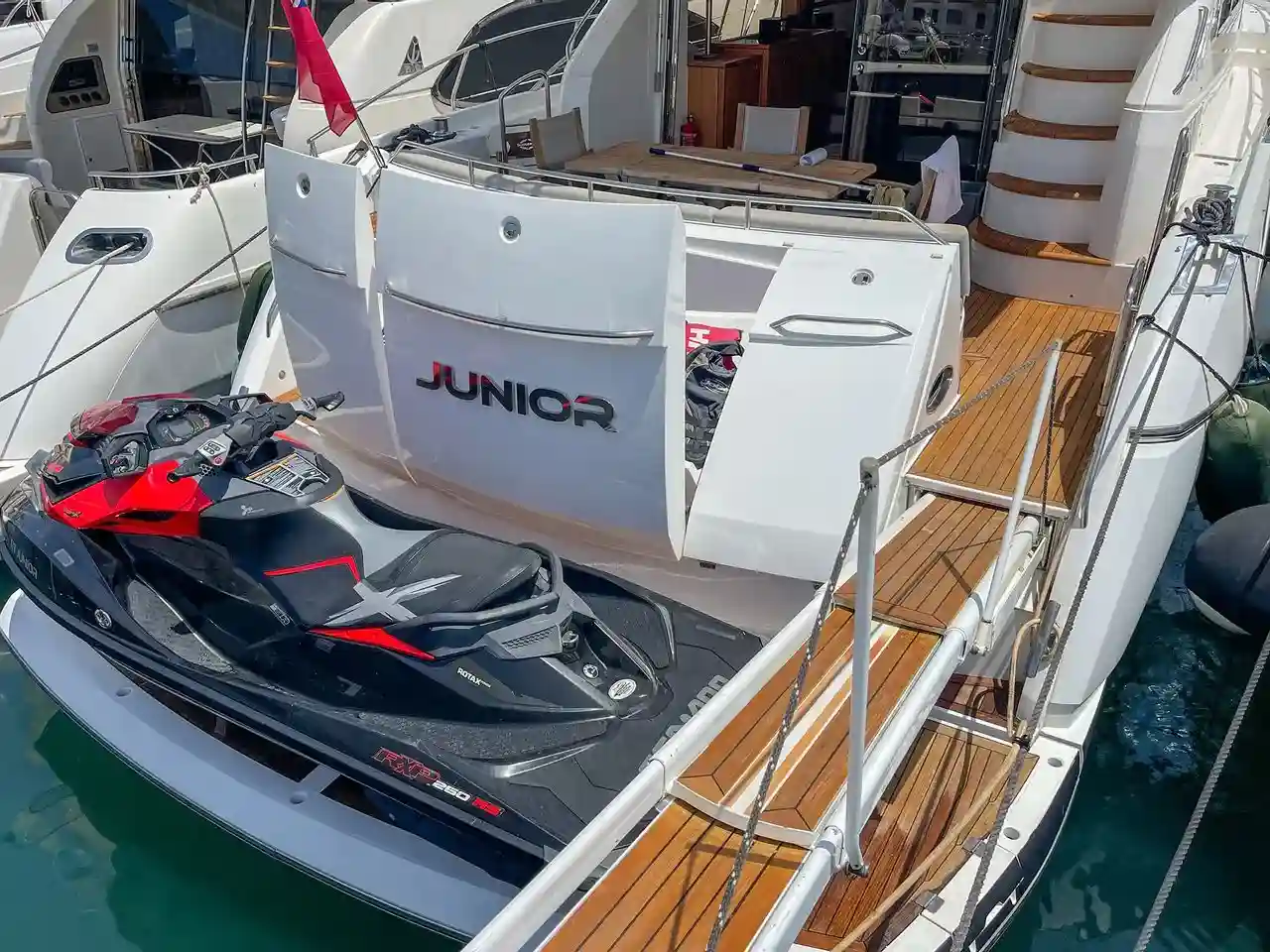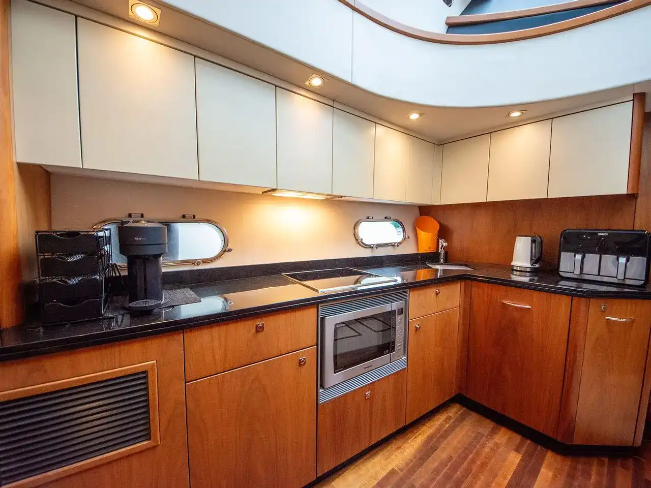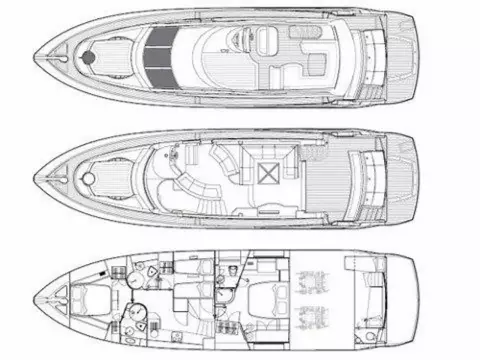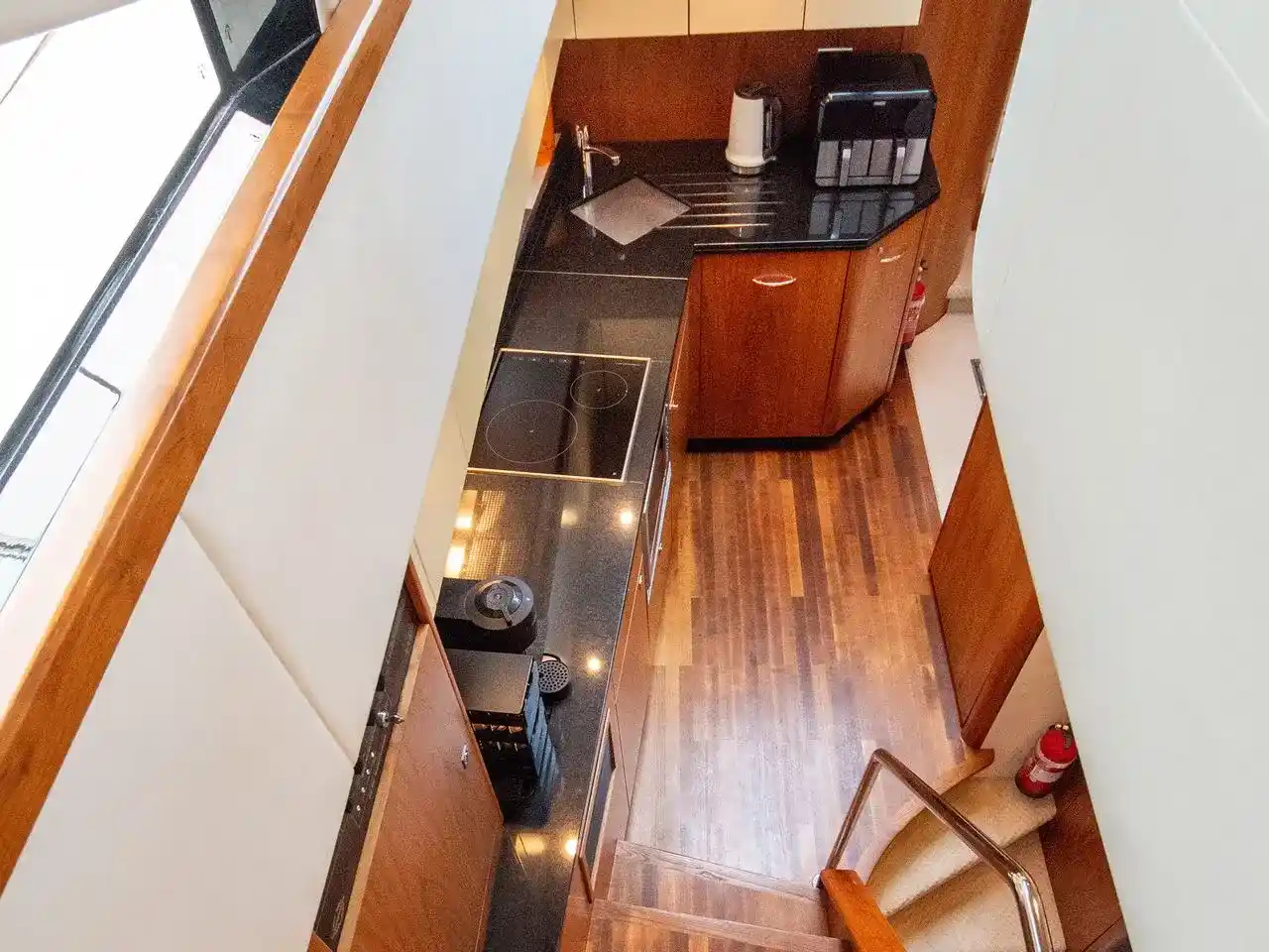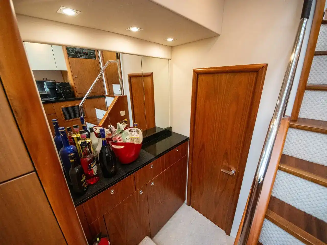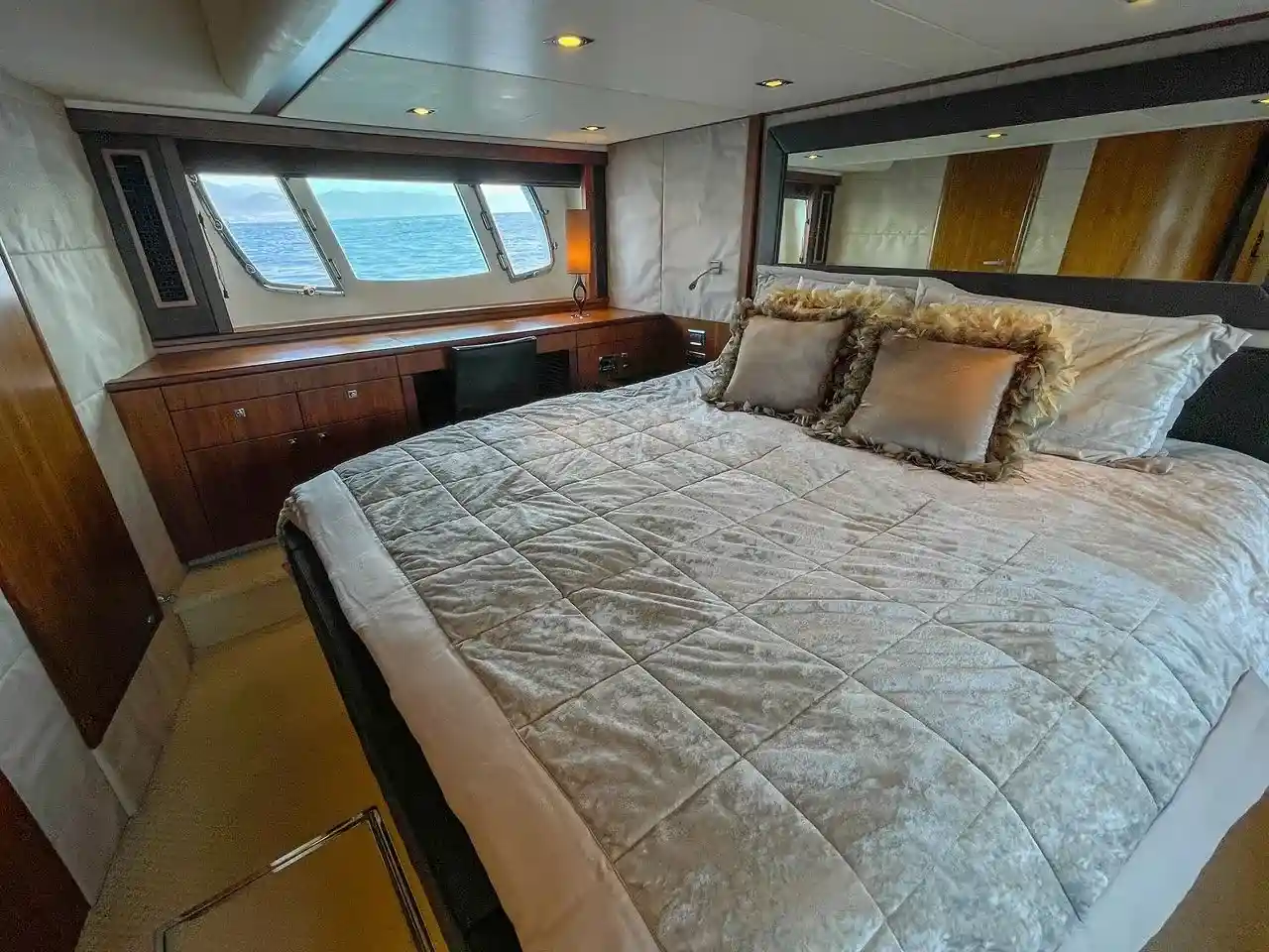Powered by the larger option twin V10 1100 MAN shaft drive diesel engines, with dual bow/stern thrusters and a remote Yacht Controller system for easy docking. She also has a great turn of speed for a cruiser of this size.
