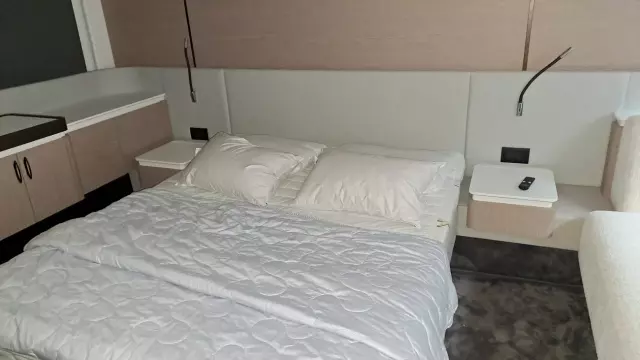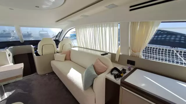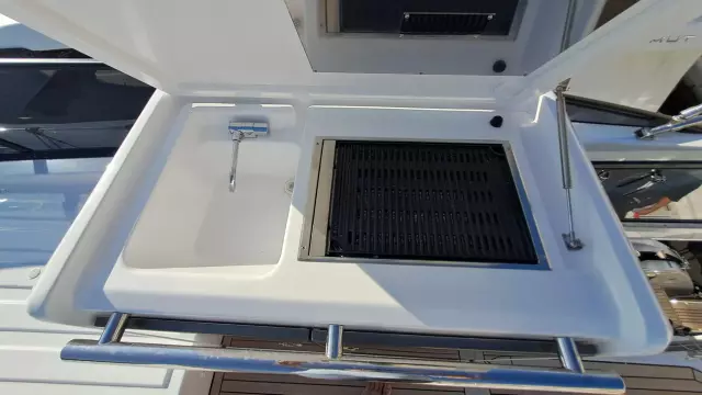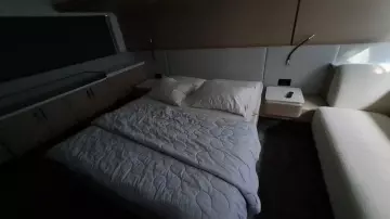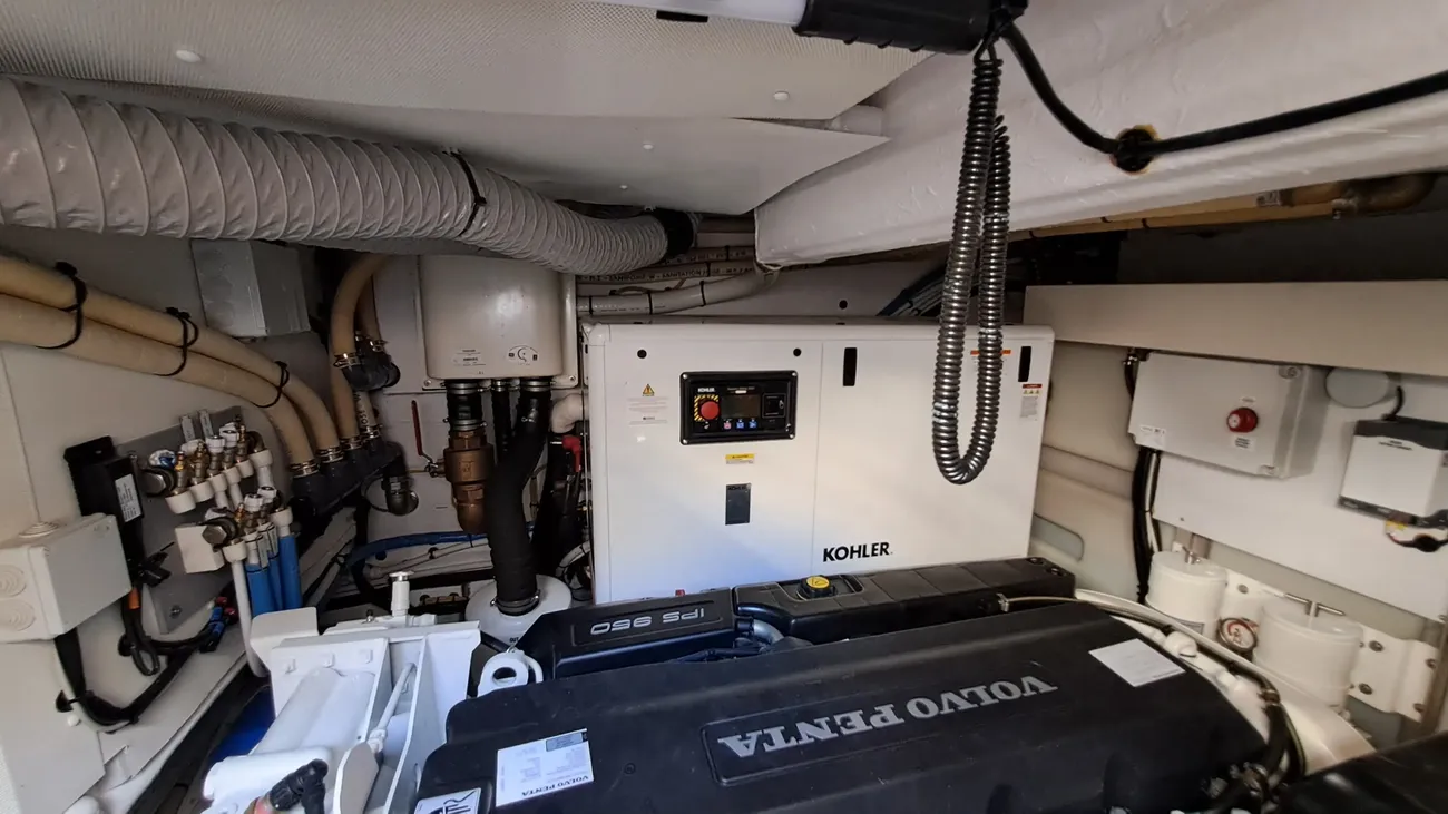 Price: plus broker's fee, Propulsion: pod drive, Water tank: 590 ltr Equipment 2nd refrigerator, glass ceramic cook top, on-board computer, toilet electric, owner cabin, guest cabin, bow cabin, salon, head, steering position inside, steering position on flybridge, fire extinguisher system, shore supply 220V, radio, TV antenna, suncushion, pressurized water system, warm water system, transom door to bathing platform, teak deck, cockpit table, bathing ladder, under water light, 220V plugs, underwater paint, holding tank, anchor windlass bow electric, anchor windlass stern electric, search light remote controlled, bathing platform hydraulic, gangway electric, trim tabs, electric/hydraulic, stern shower warm/could As new !!!