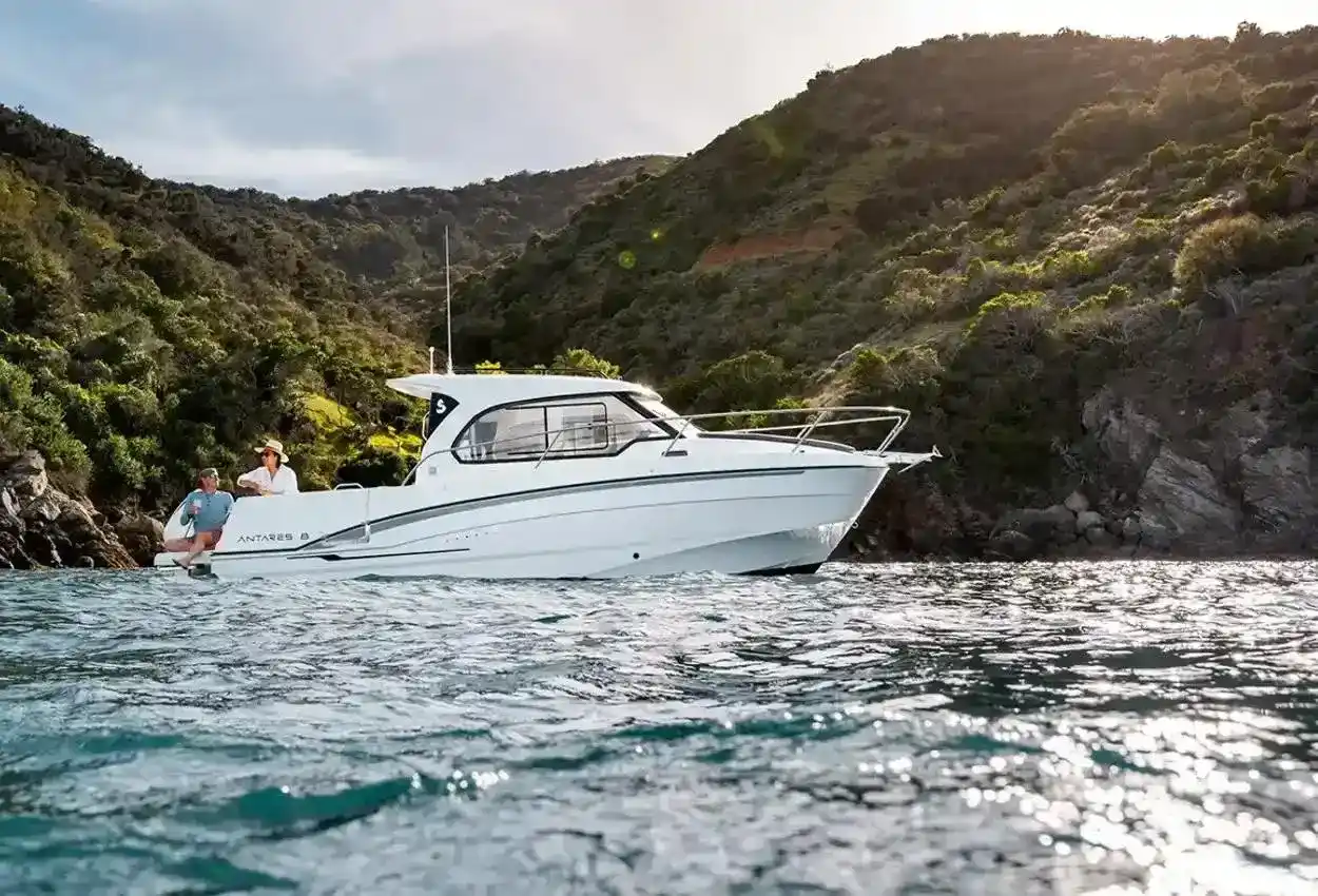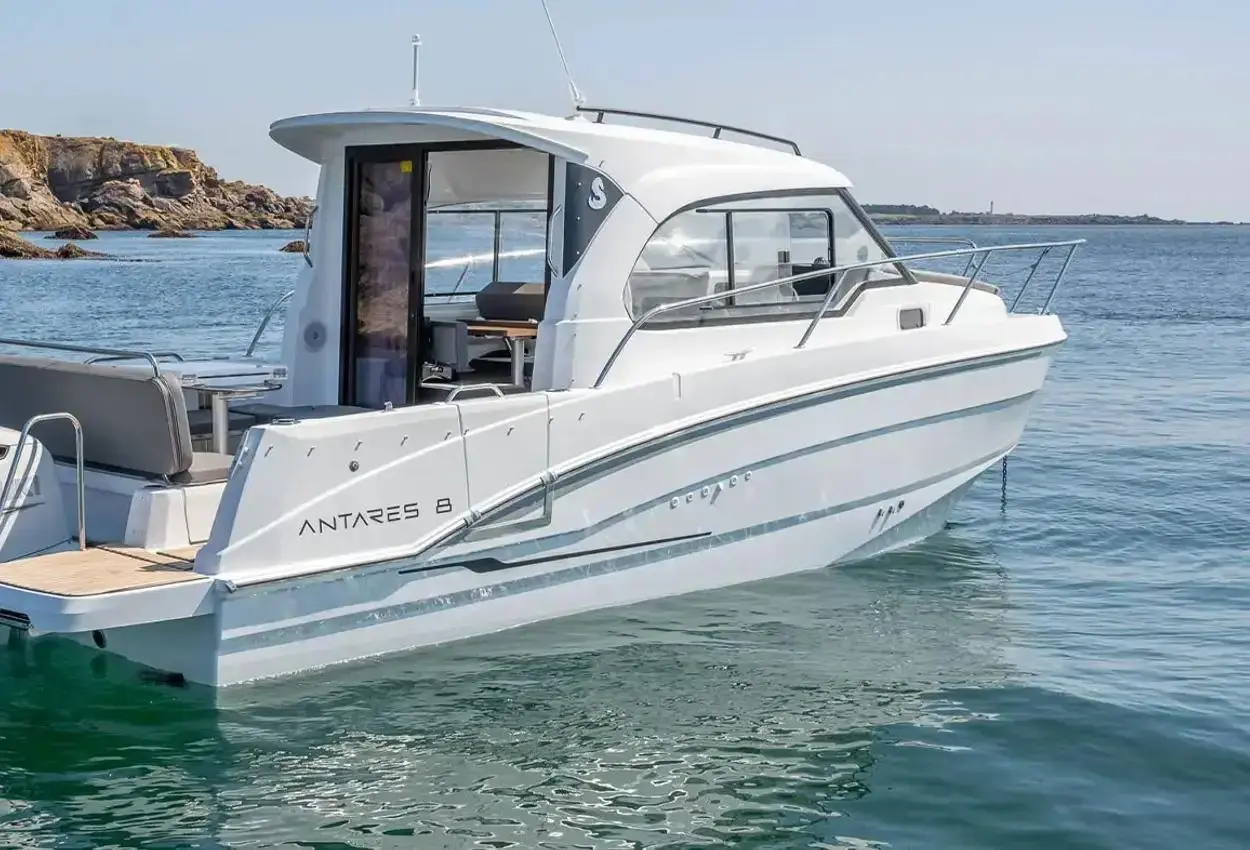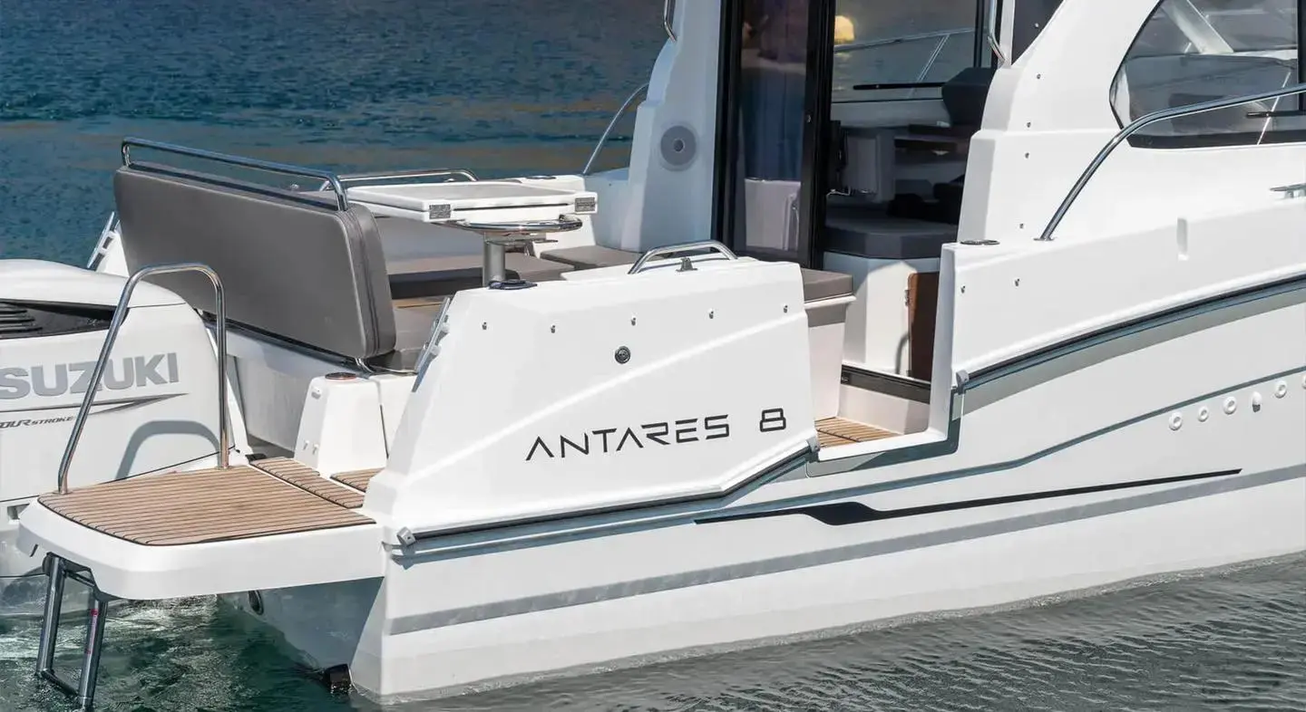 More innovative and versatile than ever, the Beneteau Antares 8 boasts a range of new leisure functionalities, so you can enjoy maximum comfort and sail in the style and elegance that is a feature of this iconic range. A supremely versatile boat, perfect for chilling out with friends or setting off to cruise for a few days. This model comes with the elegance upholstery package & F200 Suzuki outboard engine.