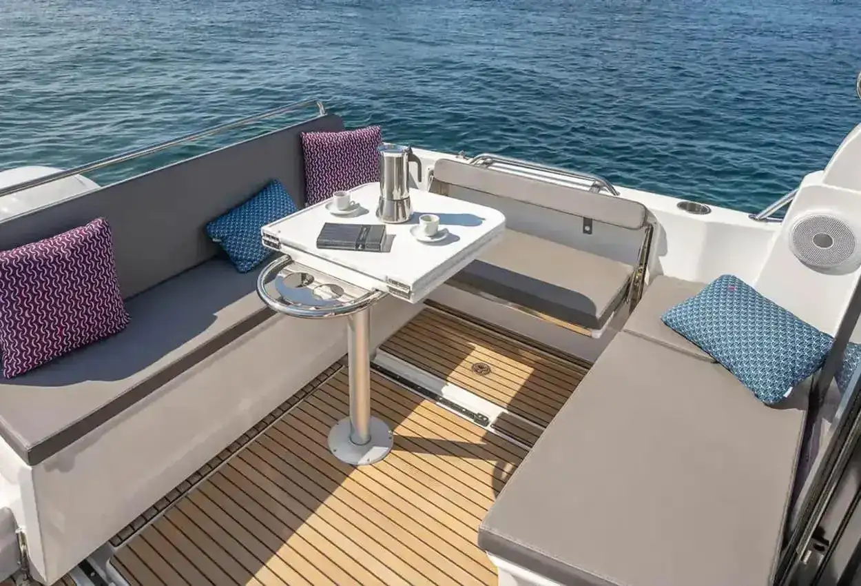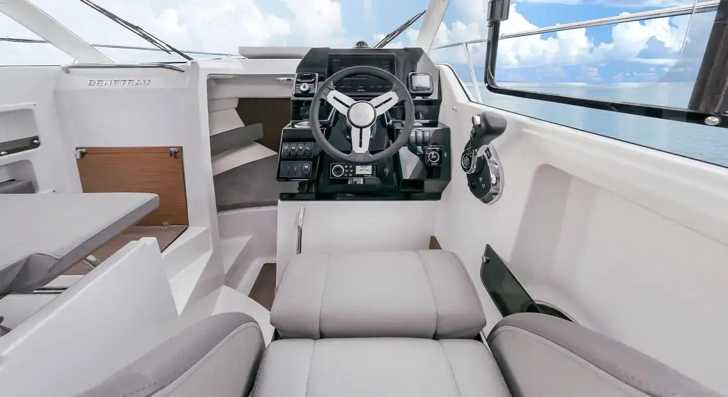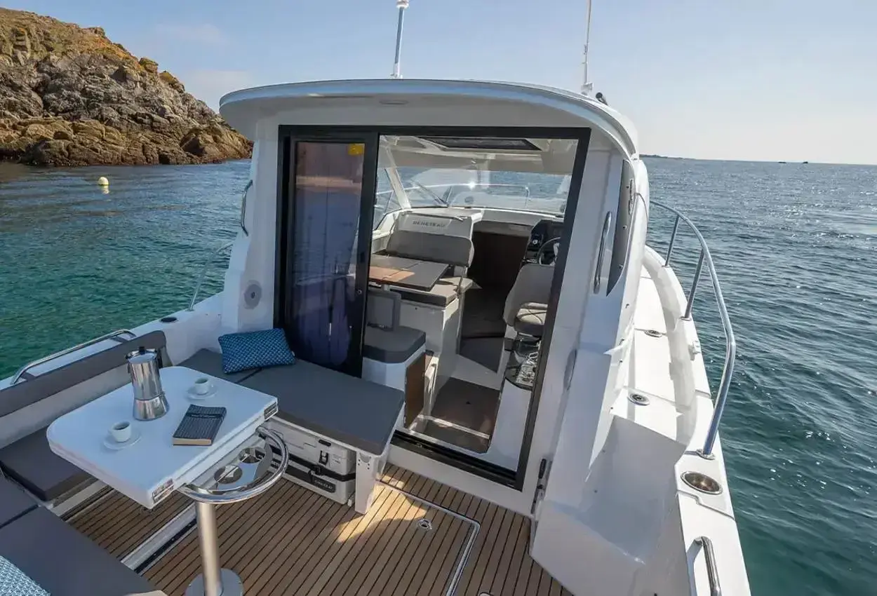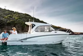 More innovative and versatile than ever, the Beneteau Antares 8 boasts a range of new leisure functionalities, so you can enjoy maximum comfort and sail in the style and elegance that is a feature of this iconic range. A supremely versatile boat, perfect for chilling out with friends or setting off to cruise for a few days. This model comes with the elegance upholstery package & F200 Suzuki outboard engine.