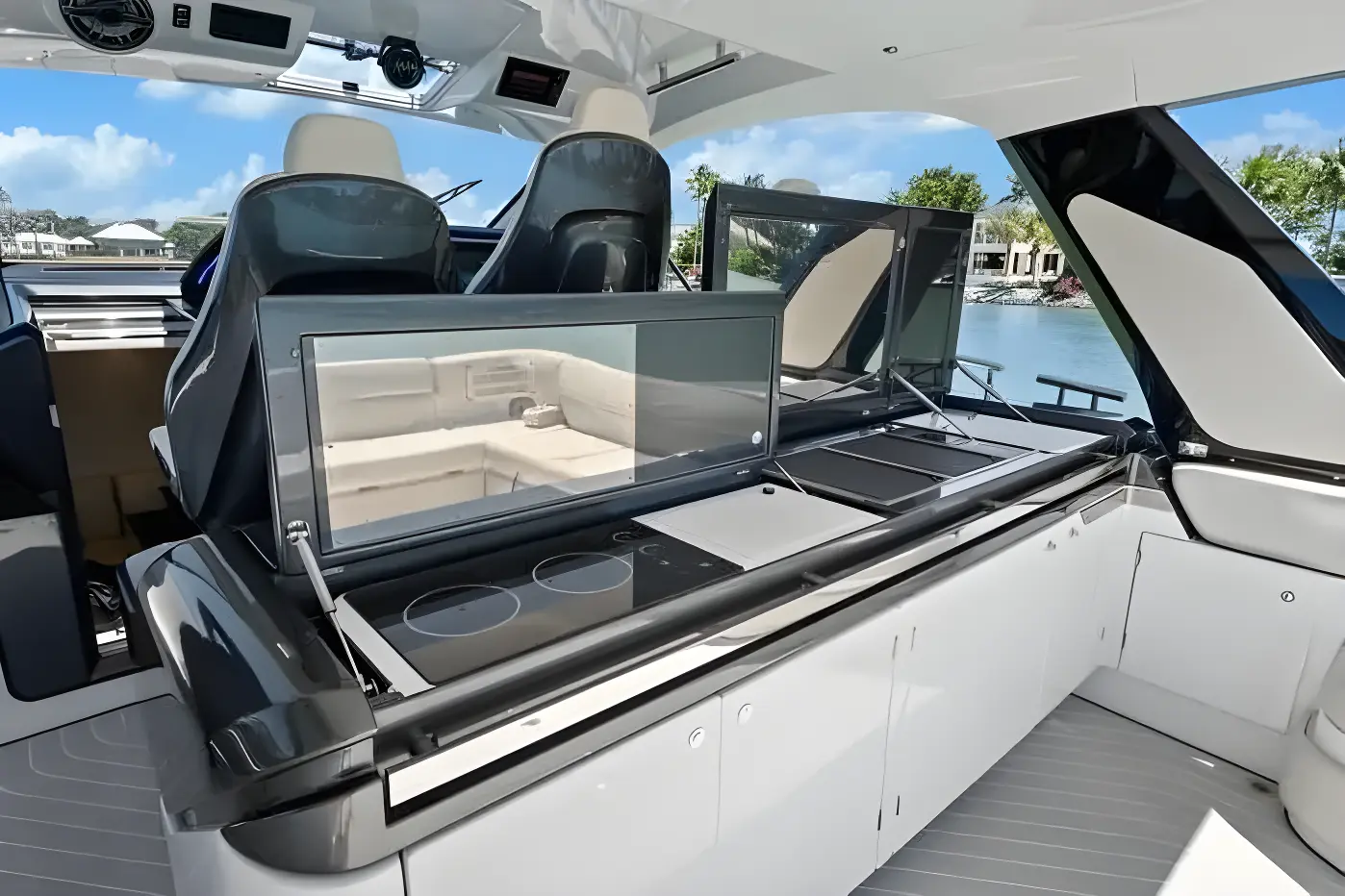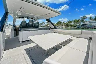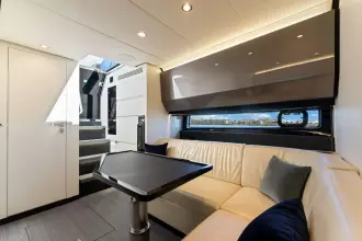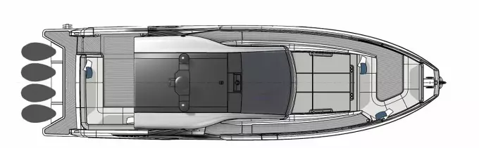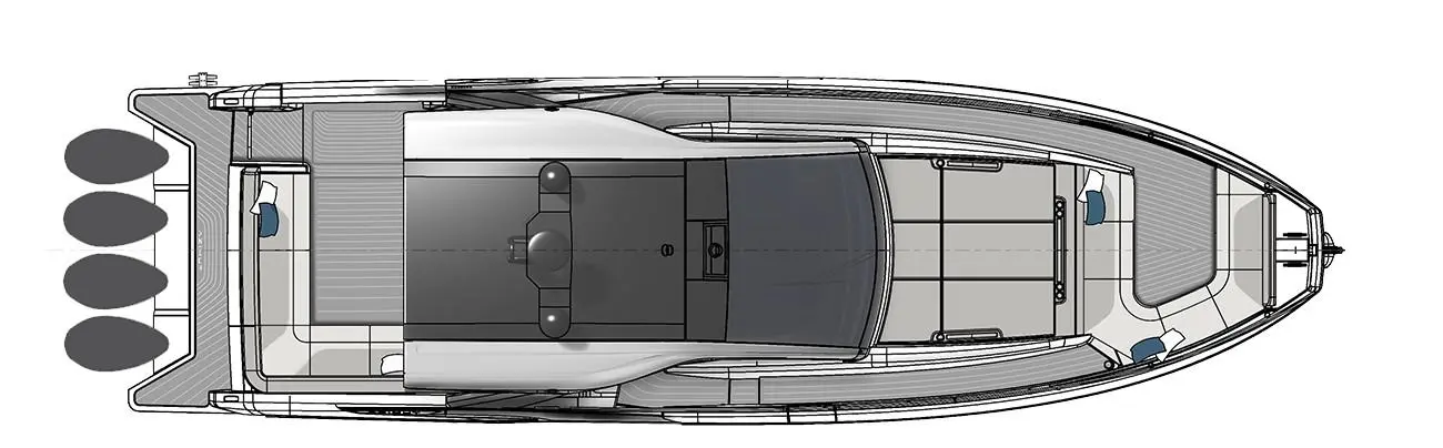 The first sporty and elegant outboard weekender, Verve 40 is more sophisticated than a walkaround, more stylish than a center console and more spacious, safe and sturdy than a day cruise