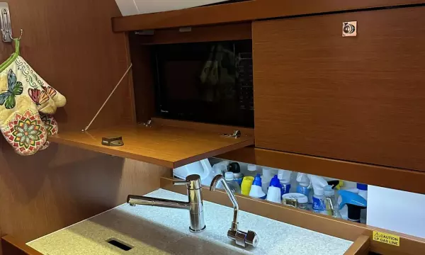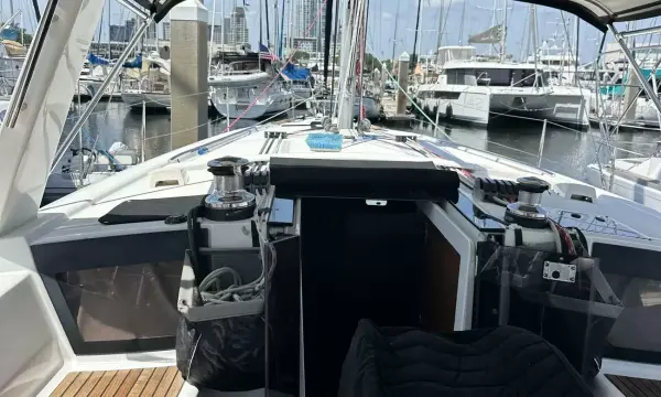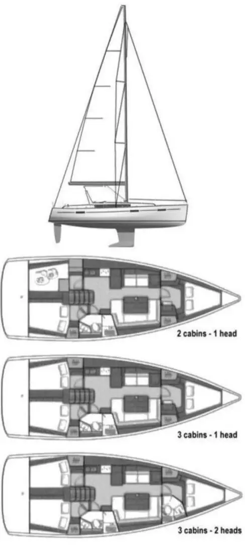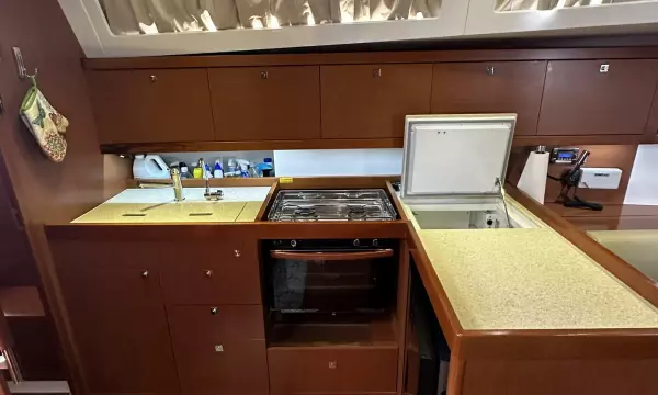 The boat is designed to be easy to handle, even for a small crew or single-handed sailing. In-mast furling with all lines running to the cockpit, an electric winch and auto-pilot make passages safe and relaxing. The performance on the water is balanced with comfort, designed to make the most of light winds and sail at less than 15 degrees of heel to make life underway more pleasant.