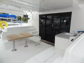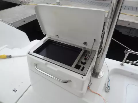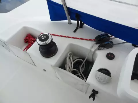A second cockpit for further enjoyment of the foredeck with dual function: seating or deck chair position, flush with the forward trampoline.