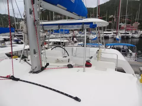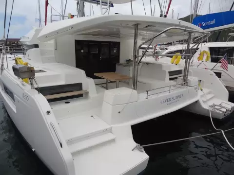 4 EVER SUMMER is the only Lagoon 50 in the fleet and coming available. 5 cabin version with less usage and hours in her first years due to the slower Covid era charter scenario. The trademark Lagoon helm on top standouts. Yanmar 57hp engines, Northern Lights generator and Sea Recovery watermaker.