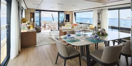 - Parquet in the saloon and galley (brushed American walnut)