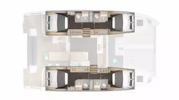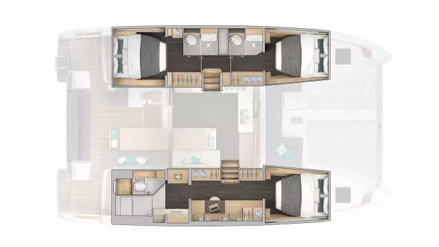 In 3 or 4-cabin versions, the Lagoon 43 offers:
