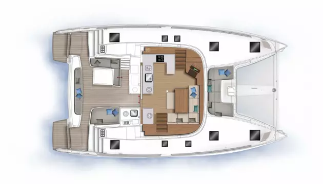 - Spacious cockpit and welcoming deck areas to enjoy the sea in total comfort