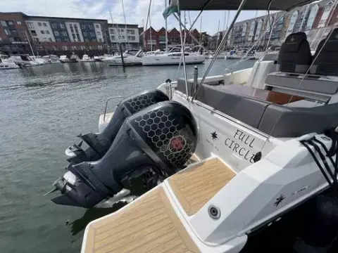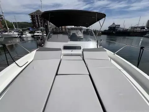 The versatile cockpit layout, generous sunbathing areas, and deep-V hull combine performance with comfort, and the interior offers real weekender capability. Sold new in 2020, she's only run approximately 100 hours and has been recently serviced and antifouled (October 2024) by her second careful owner. Well-specced, lightly used, and ready to enjoy.