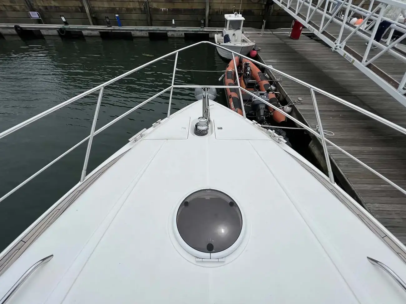 - Large aft swim platform with well placed grab rails and integrated swim ladder