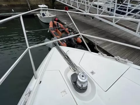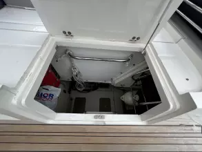 - At the transom there is an electric lifting tender garage currently with a 3.3m BRIG and electric winch