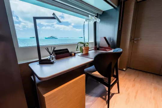 • Folding balcony on the starboard side, with large sliding door
