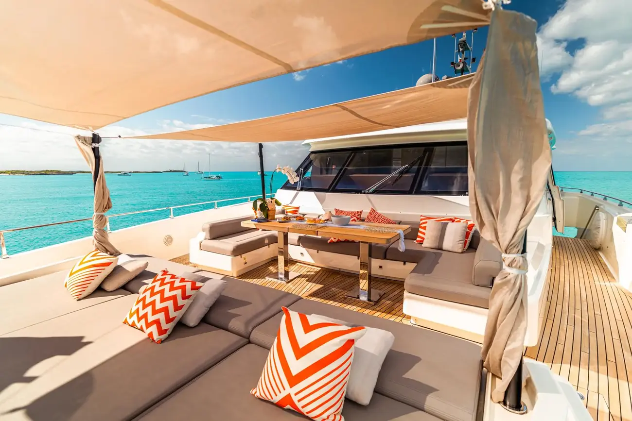 • Aft deck sun pad with sliding back rest