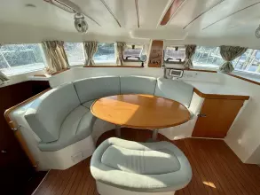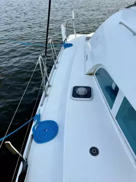 Imagine entertaining up to eight friends and family in comfort: this catamaran boasts a four-cabin, two-head layout designed for ease and utility. Step aboard and instantly be captivated by the panoramic views from the saloon and the incredibly practical, galley-up design – perfect for preparing meals while staying part of the action.