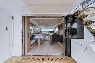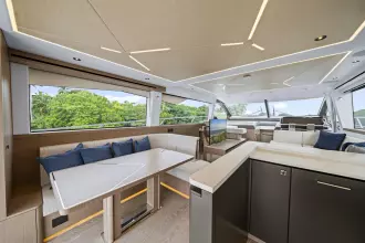 With twin MAN V8 1200 (2 x 1200PS) engines and CMC Waveless fin stabilization, the Manhattan 68 delivers a quiet, confident ride across all conditions. An expansive flybridge, seamless open-plan interior, and powerful technology suite offer an unmatched onboard experience.