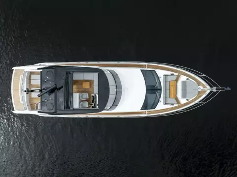- Flybridge hardtop with electric center opening (Jet Black finish)