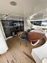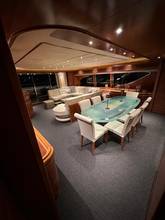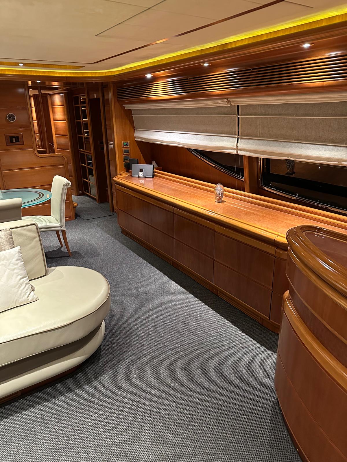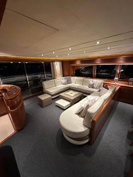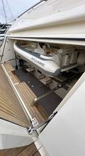 2nd refrigerator, extractor hood, dishwasher, watermaker, toilet electric, separate crew cabine, owner cabin, guest cabin, bow cabin, salon, head, steering position inside, steering position on flybridge, fire extinguisher system, main circuit breaker, warm water system, bathing platform integrated, wetbar, cockpit table, under water light, 220V plugs, underwater paint, anchor windlass bow electric, gangway electric, trim tabs, electric/hydraulic, stern shower warm/could