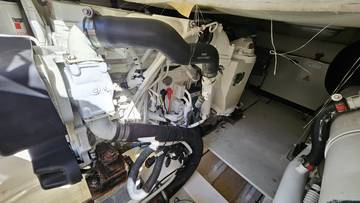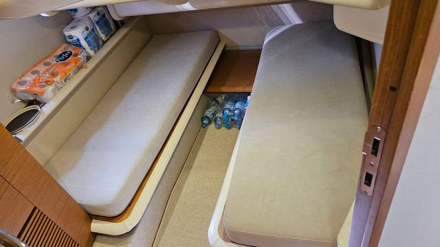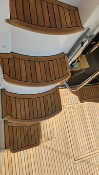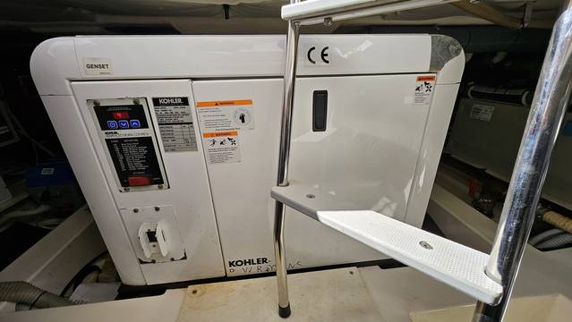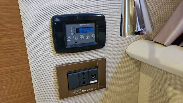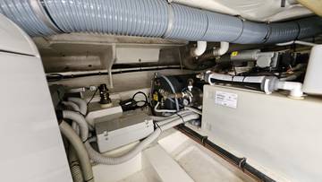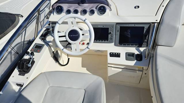 glass ceramic cook top, toilet electric, owner cabin, guest cabin, salon, head, steering position inside, steering position on flybridge, fire extinguisher system, shore supply 220V, radio, cockpit cover, flybridge cover, pressurized water system, warm water system, bathing platform integrated, transom door to bathing platform, cockpit table, bathing ladder, underwater paint, holding tank, engine battery, voltmeter, anchor windlass bow electric, windscreen wiper, gangway electric, trim tabs, electric/hydraulic, stern shower warm/could