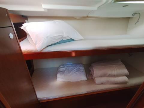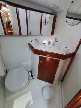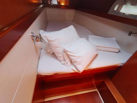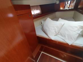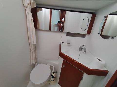 toilet manual, owner cabin, guest cabin, aft cabin, bow cabin, salon, head, shore supply 220V, main circuit breaker, radio, pressurized water system, warm water system, cockpit table, bathing ladder, 220V plugs, underwater paint, holding tank, hob gas, anchor windlass bow electric, stern shower warm/could, mainsail roller-furling