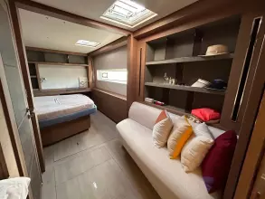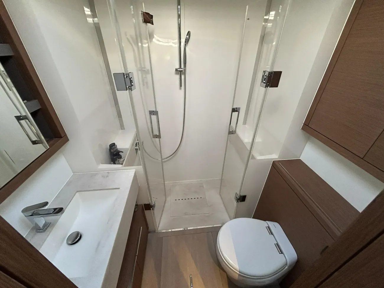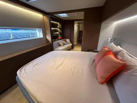 Accommodation aboard the Lagoon Sixty7 is generously arranged for up to 8 guests in 4 spacious cabins, each designed for comfort and privacy. Additionally, there is accommodation for 4 crew members, ensuring that service and support are always available during your voyages.