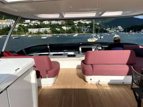 Introducing the stunning 2020 Lagoon Sixty7, an exceptional power catamaran. This luxurious vessel is meticulously maintained and comes with an impressive specification, including twin YANMAR 6LY400 engines with only 326 hours, a 19kVA ONAN generator, and a bow thruster for enhanced manoeuvrability.