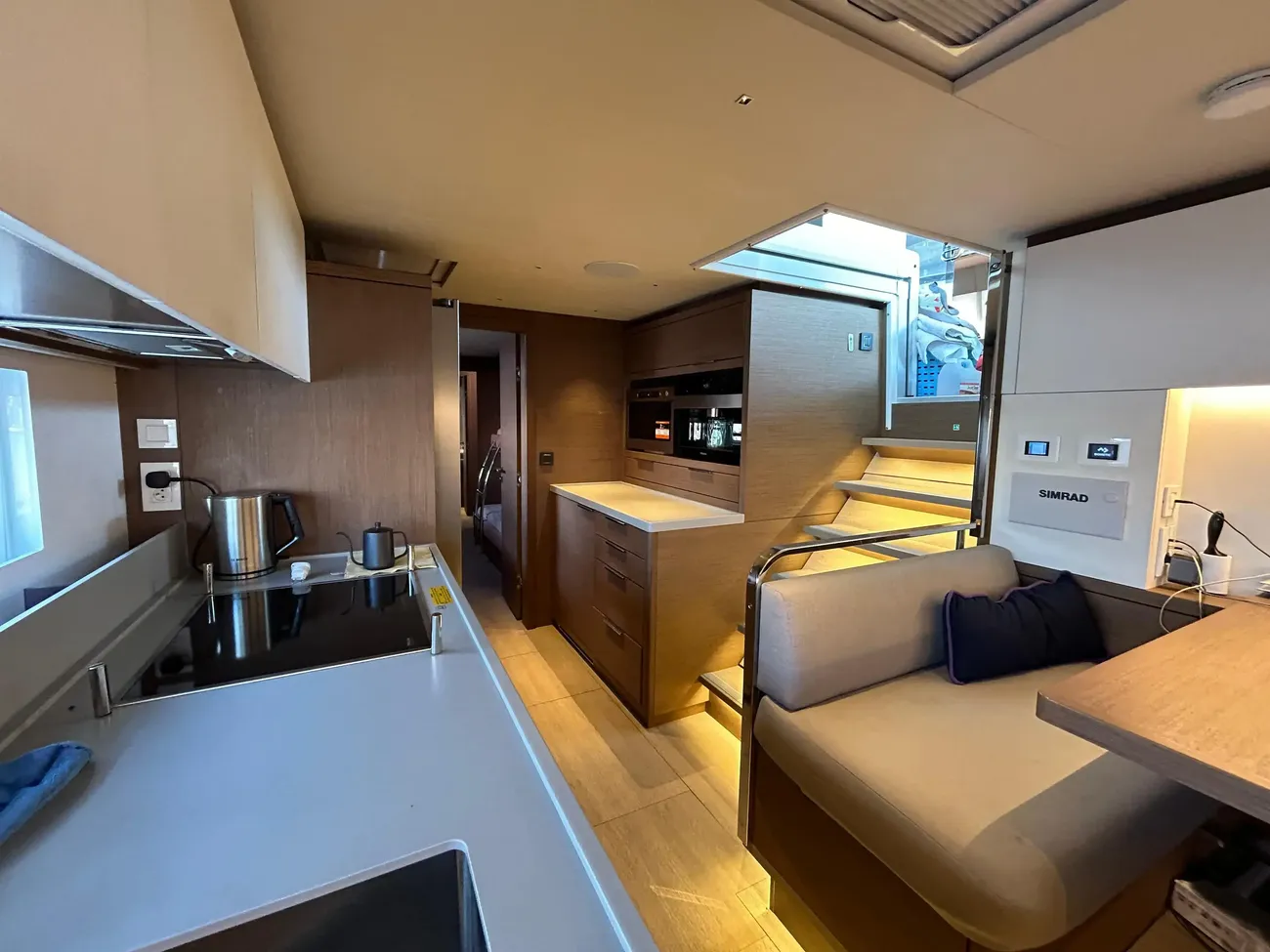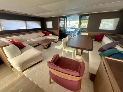 The interior of the Lagoon Sixty7 is a masterpiece of design, offering a perfect balance of elegance and functionality. The wide-open spaces, luxurious furnishings, and state-of-the-art amenities make it an ideal choice for those seeking to travel the world in style or simply enjoy the pleasures of coastal cruising.