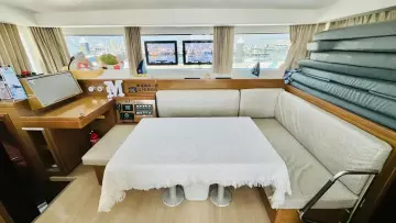 Step inside to experience the timeless elegance of the VIP version’s salon, adorned with sophisticated décor and an elegant dining table that seats eight. The yacht's layout ensures ample space for social gatherings and intimate dinners, reflecting a perfect blend of luxury and functionality.
