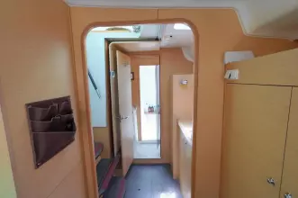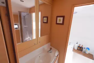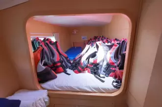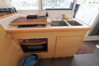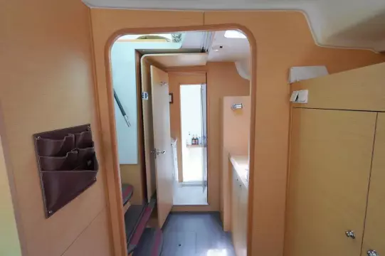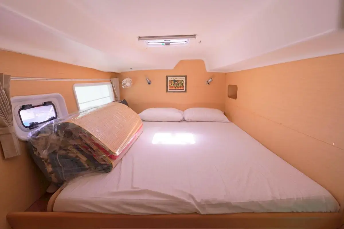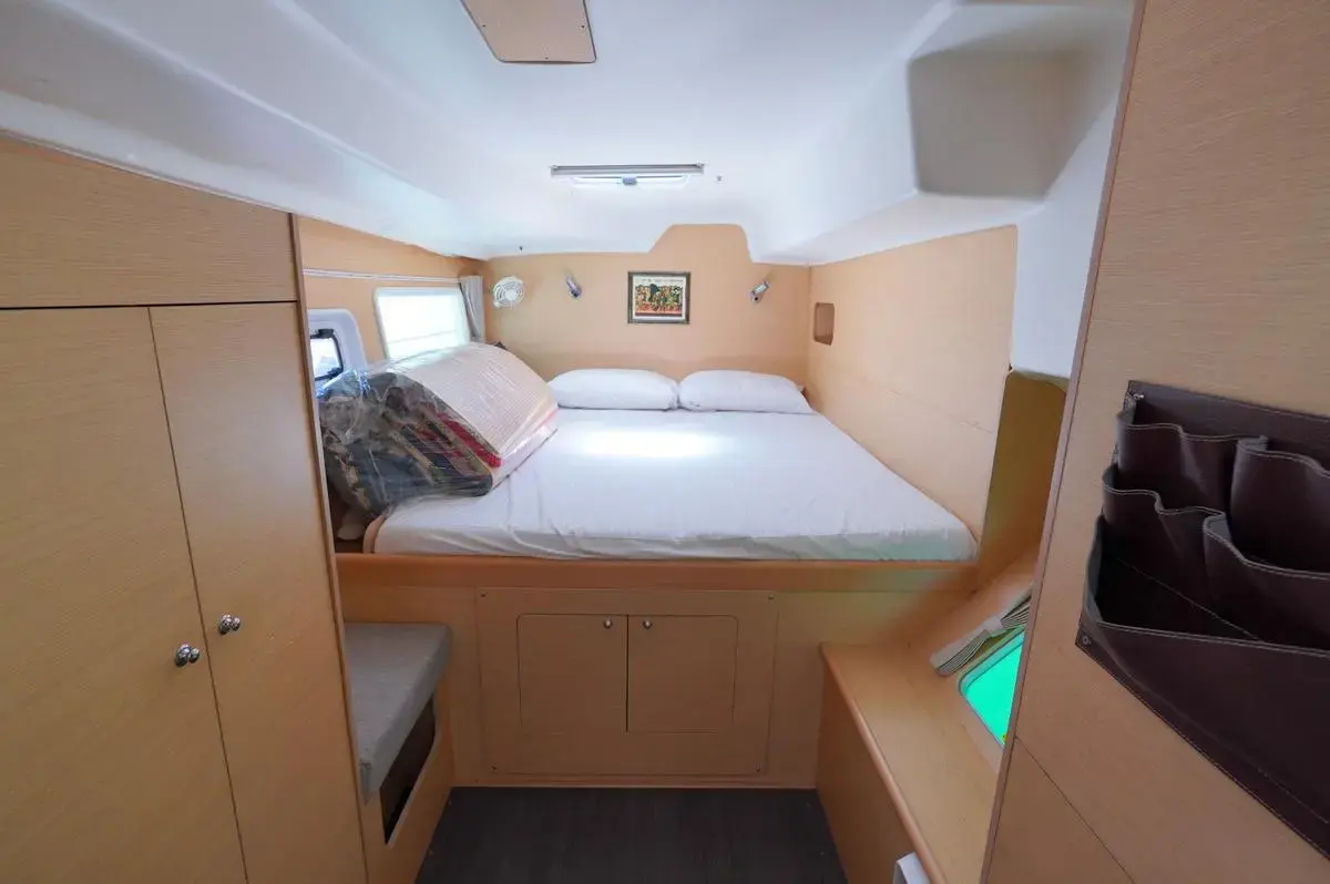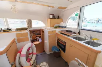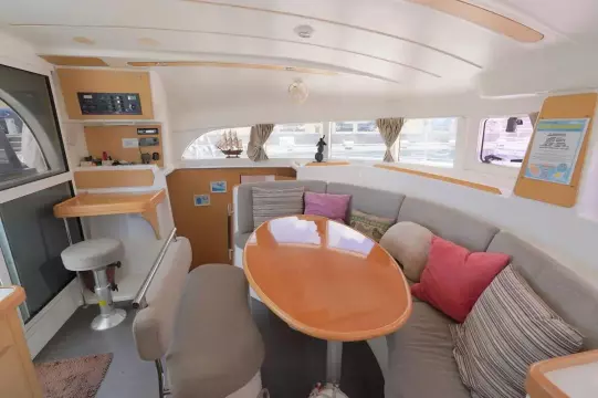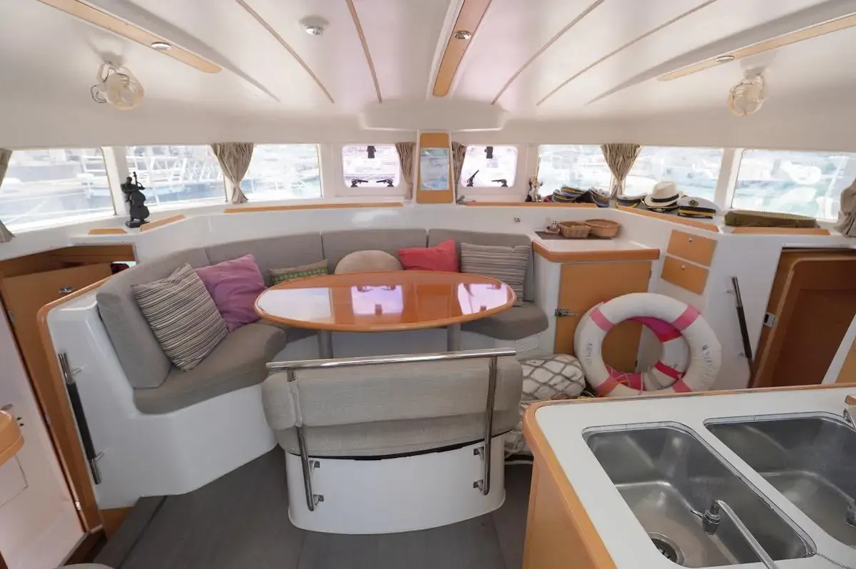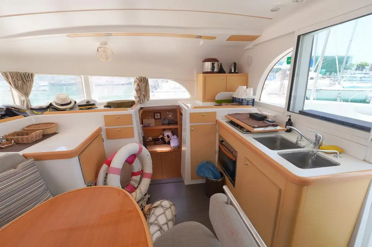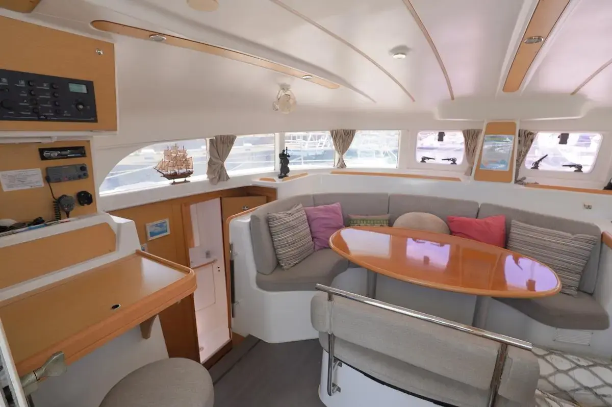 this Lagoon 380S2 was reintroduced in 2004 with some fantastic changes. There have been 17 improvements including large hull side windows that allow for more natural light, a sliding door that isolates the owners cabin giving total privacy from the rest of the guests and there is better refrigeration and counter space in the galley.