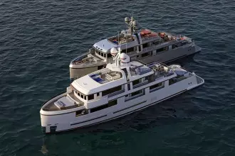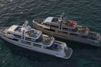 DEIMOS is a 43-meter motor yacht designed by Italian designer Gian Paolo Nari and in build by Aegean Yacht, one of Turkey’s most established shipyards. Conceived as the explorer version of two sister ships, DEIMOS combines robust engineering, long-range autonomy, and striking design within a sub-500 GT platform.