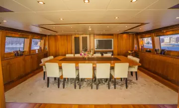She is unique in being built with 7 en-suited staterooms (1 enormous main deck master / 2 double VIP / 4 twin) which can accommodate up to 14 guests, with 7 crew members waiting on their every need. Timeless styling, beautiful furnishings and sumptuous seating feature throughout to create an elegant and comfortable atmosphere.