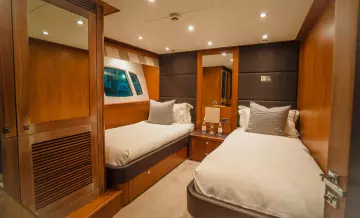 Crew cabin 2: 1 single bed, shower and head shared with cabin 1, sound system.