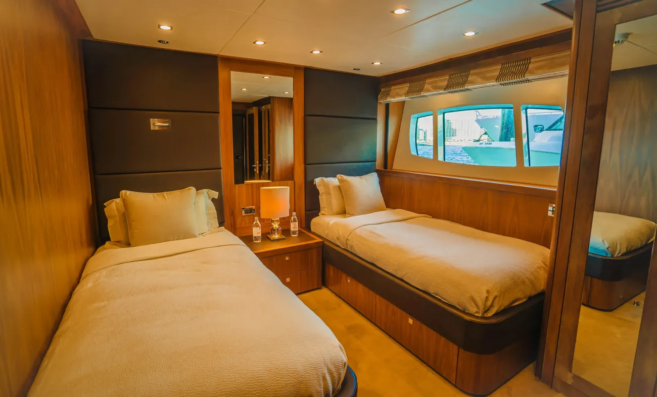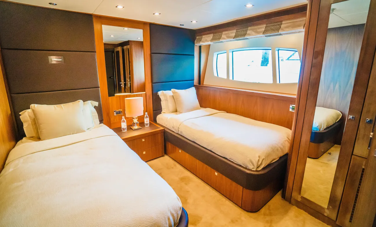 Crew cabin 1: 1 single bed, shower and head shared with cabin 2, sound system