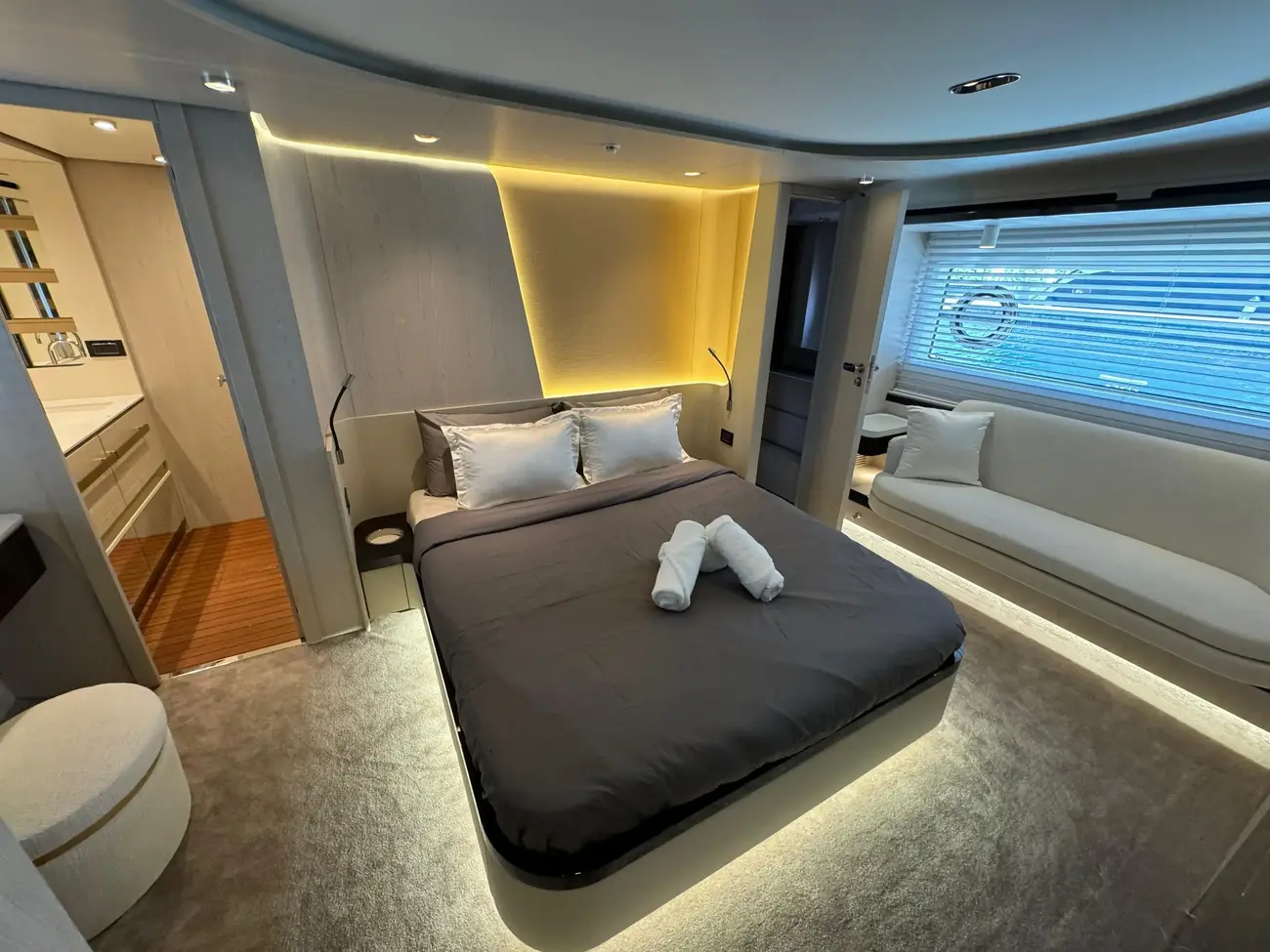 - Designer lamp with shelf on portside in master cabin (only compatible with standard sofa)