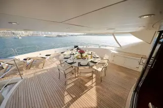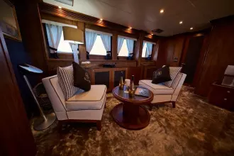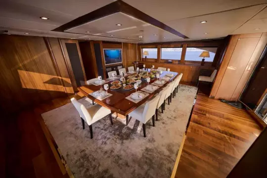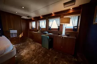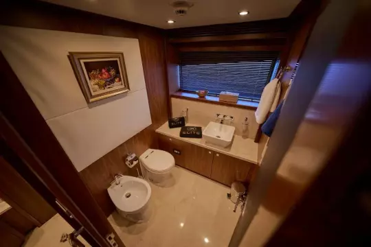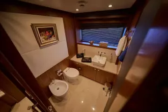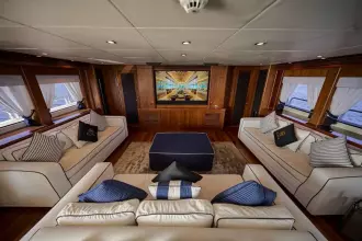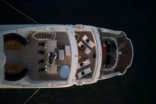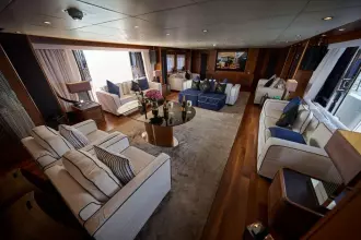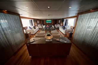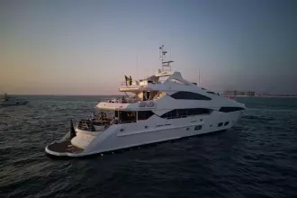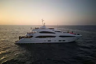 Accommodations span six finely finished cabins, each with its own head, providing privacy and comfort for twelve guests. Modern stabilization and bow/stern thrusters ensure effortless handling, while full air-conditioning and integrated AV systems keep every space serene. The hydraulic swim platform and tender garage with crane make water-toy deployment a breeze. Whether charting long ocean passages or exploring hidden coves, the 131 Yacht delivers unmatched performance, space and luxury.