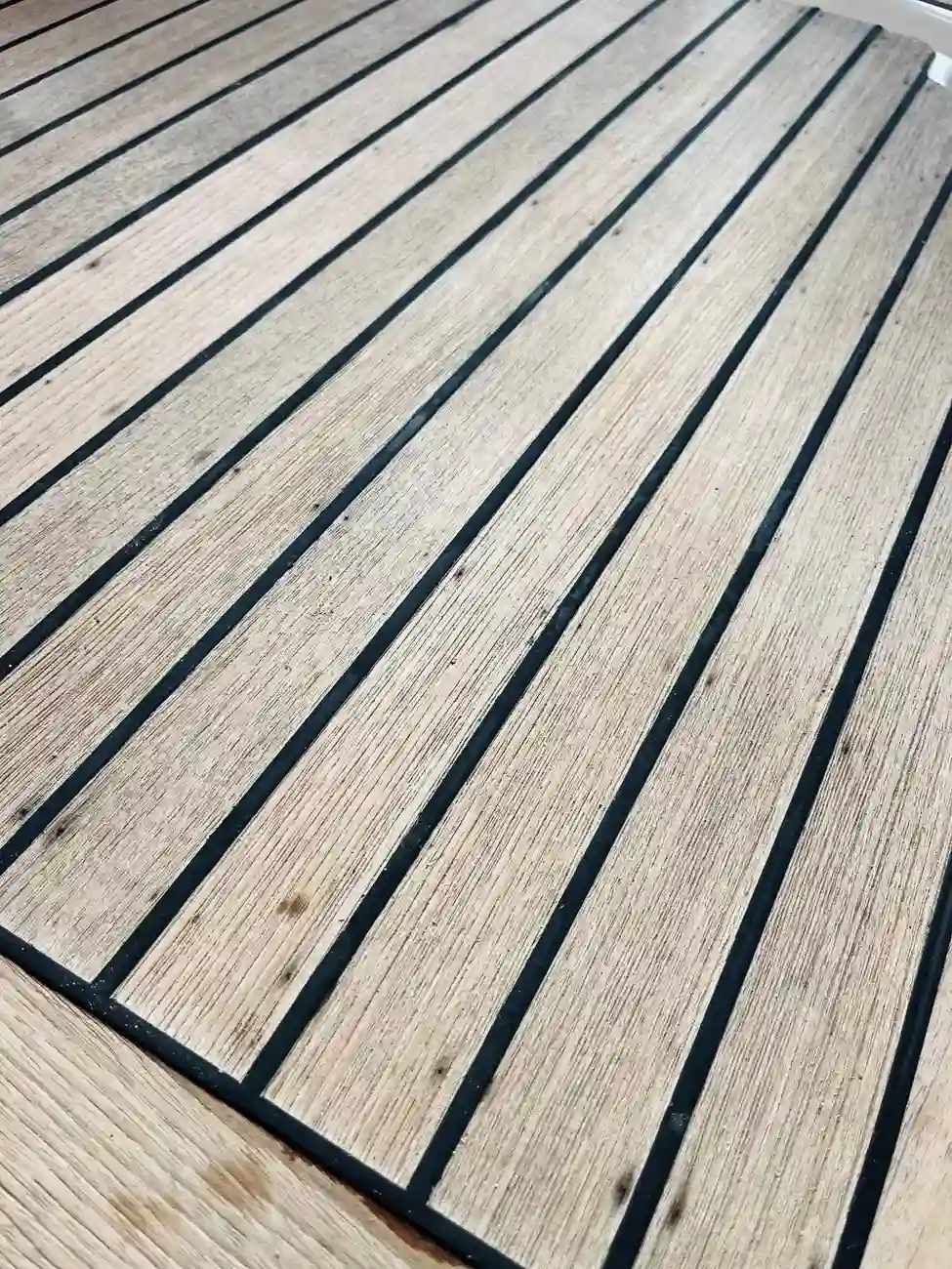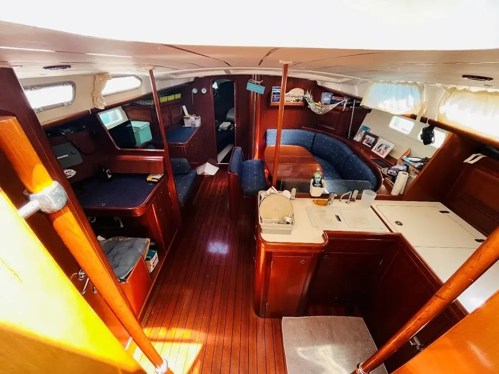 Finished in varnished cherry with a faux teak sole and white molded headliner her interior is easily maintained.