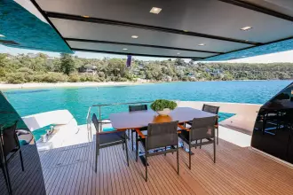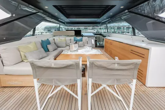 The SX76 seamlessly merges the best elements of traditional motor yachts with crossover functionality. Her open-plan layout creates a generous indoor-outdoor flow, ideal for entertaining, watersports, or unwinding in complete comfort.