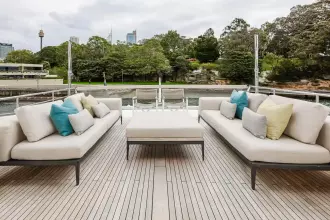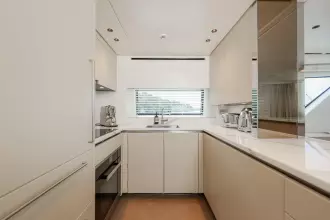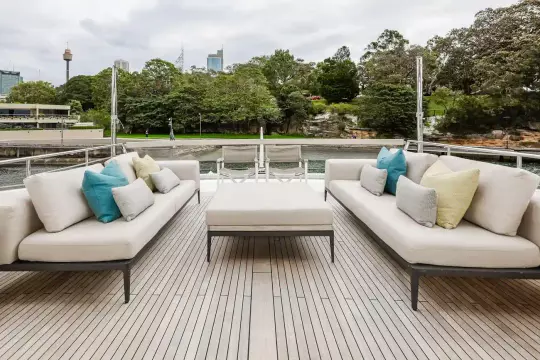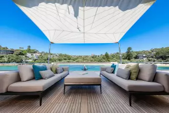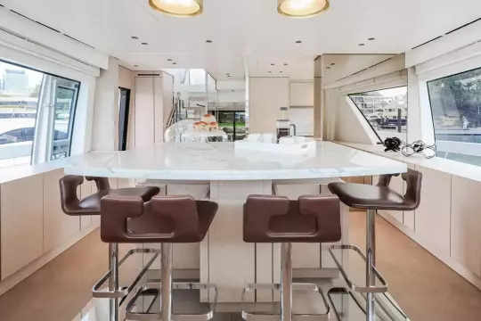Accommodations include four luxurious ensuite guest cabins sleeping up to eight, plus a crew cabin for 2, enhanced service and comfort. Every detail from the expansive flybridge to the sophisticated main deck has been thoughtfully considered to maximise both enjoyment and connection to the sea.