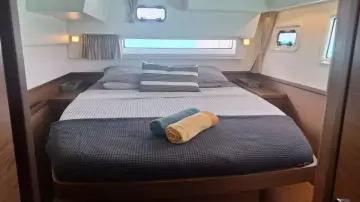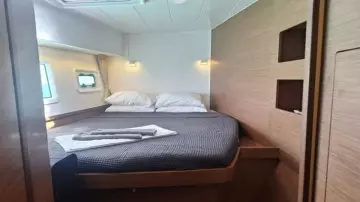 - Master Stateroom: Large master stateroom in starboard hull includes office area and ensuite head.