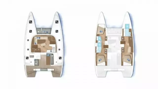 - Other Staterooms: Two guest staterooms in port hull with double berths and separate ensuite heads.