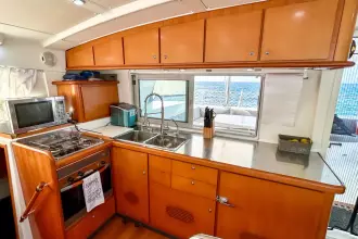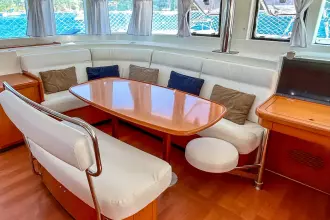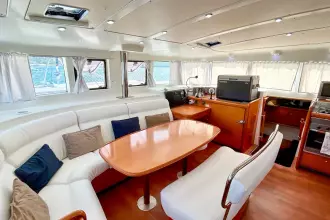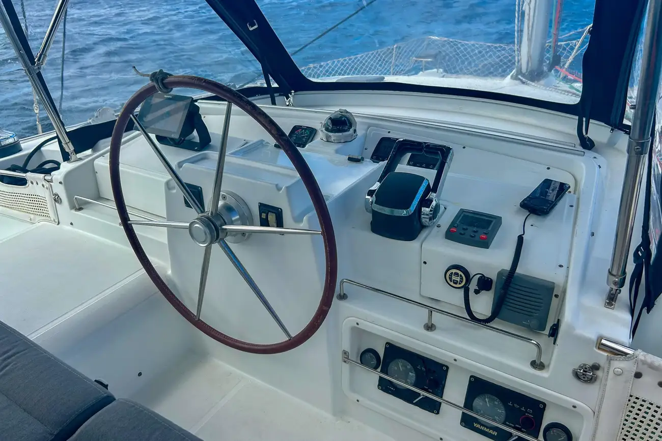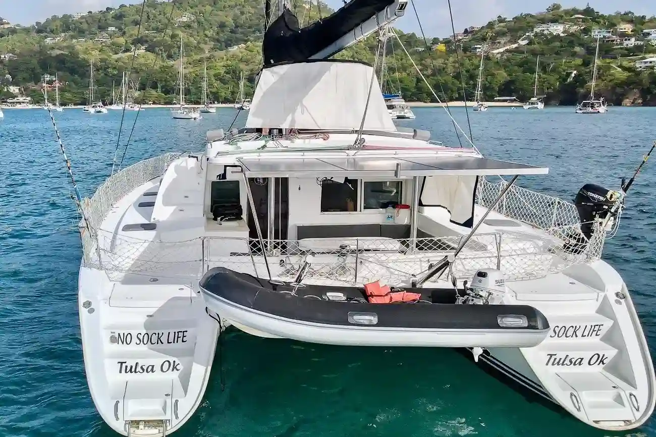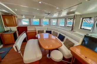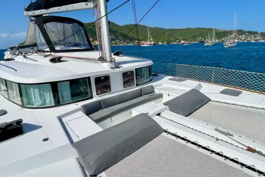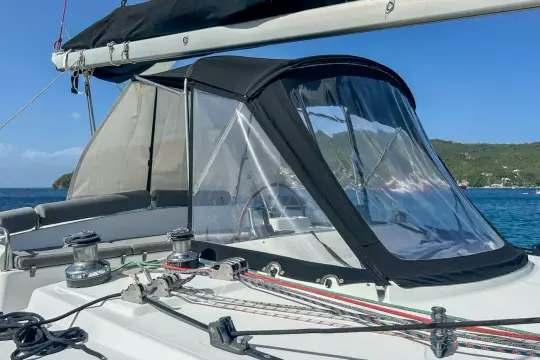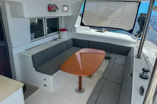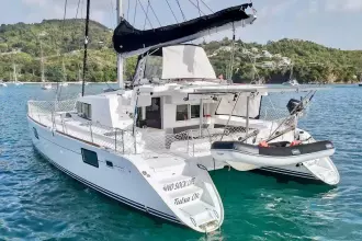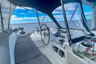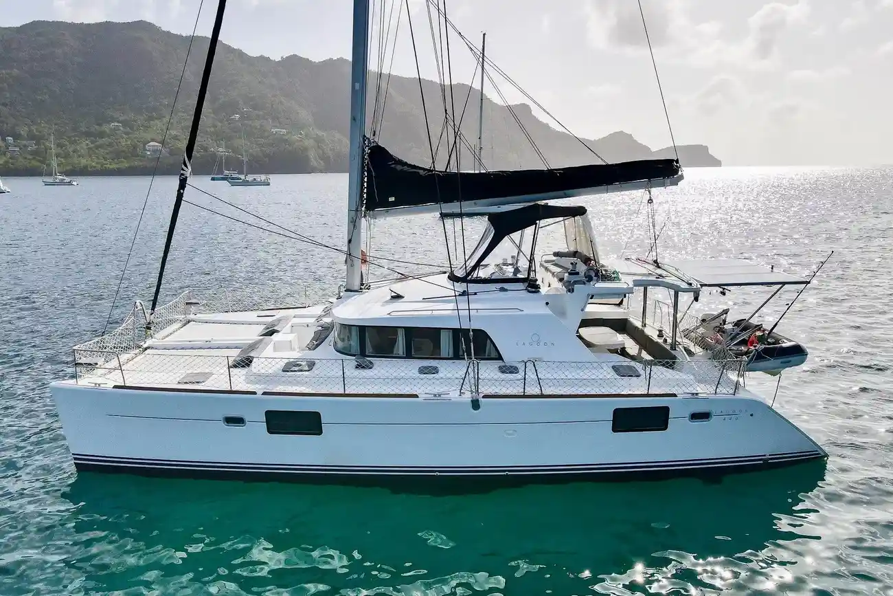 This Lagoon 440 has never been chartered and has spent the majority of its life sailing about the Caribbean and East Coast on adventures near and far. She has had numerous recent upgrades making her ready to go for the next owners! SailiFi will be available for showing and for sale in the Bahamas. SailiFi is a 3-cabin owner's version with the signature flybridge helm and refreshed exterior upholstery. It has a packed sail locker with a main and headsail new as of '24 along with a Code Zero and Parasailor for longer passages. The vessel has an impressive 1200w solar arch and 1200ah lithium house bank combination with Victron charging and monitoring for extended cruising off grid. This vessel is set up for low-stress cruising with relatively low engine hours (2200), a Raymarine navigation suite new as of '22, and interior/exterior helm controls. The cockpit and salon have two full size and one coffee table, which are interchangeable for optimal entertaining space. Additionally, it features a well-sized 12' AB ('22) with a 20hp Suzuki ('24) for exploring. The owners are ready to pass SailiFi on to the next adventurers so reach out for a video walkthrough of the vessel!