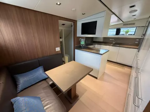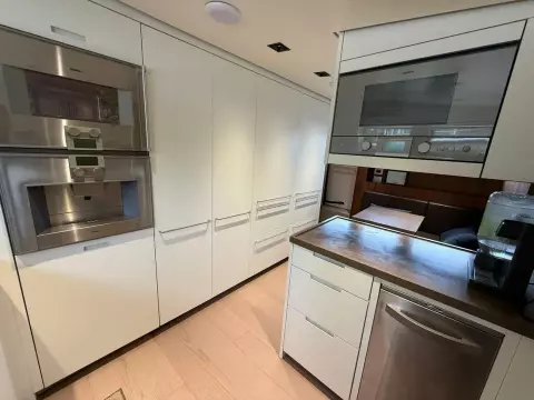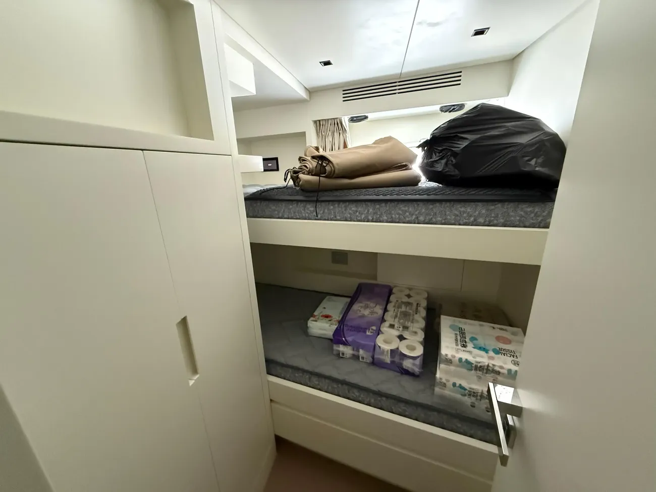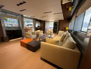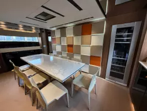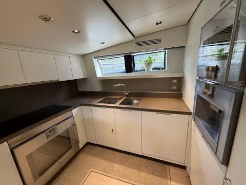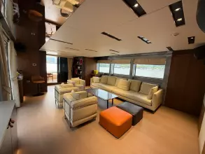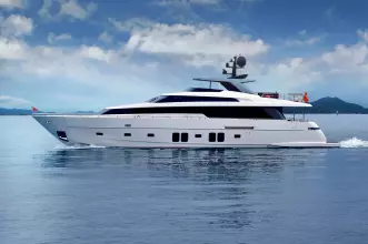 Powered by twin 2216 Hp MTU diesel engines, this Sanlorenzo SL96 motor yacht can reach a top speed of 28 knots and comfortably cruise at 25knots, and she boasts a maximum cruising range of 1120.0 nm at 11.0 kn. She can accommodate up to 8 guests in 4 staterooms, with 4 crew members waiting on their every need. She has a gross tonnage of 160.0 GT and a 6.75 m beam.
