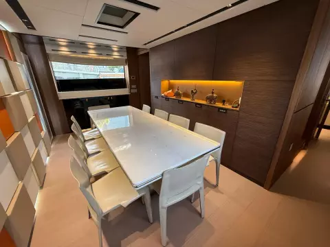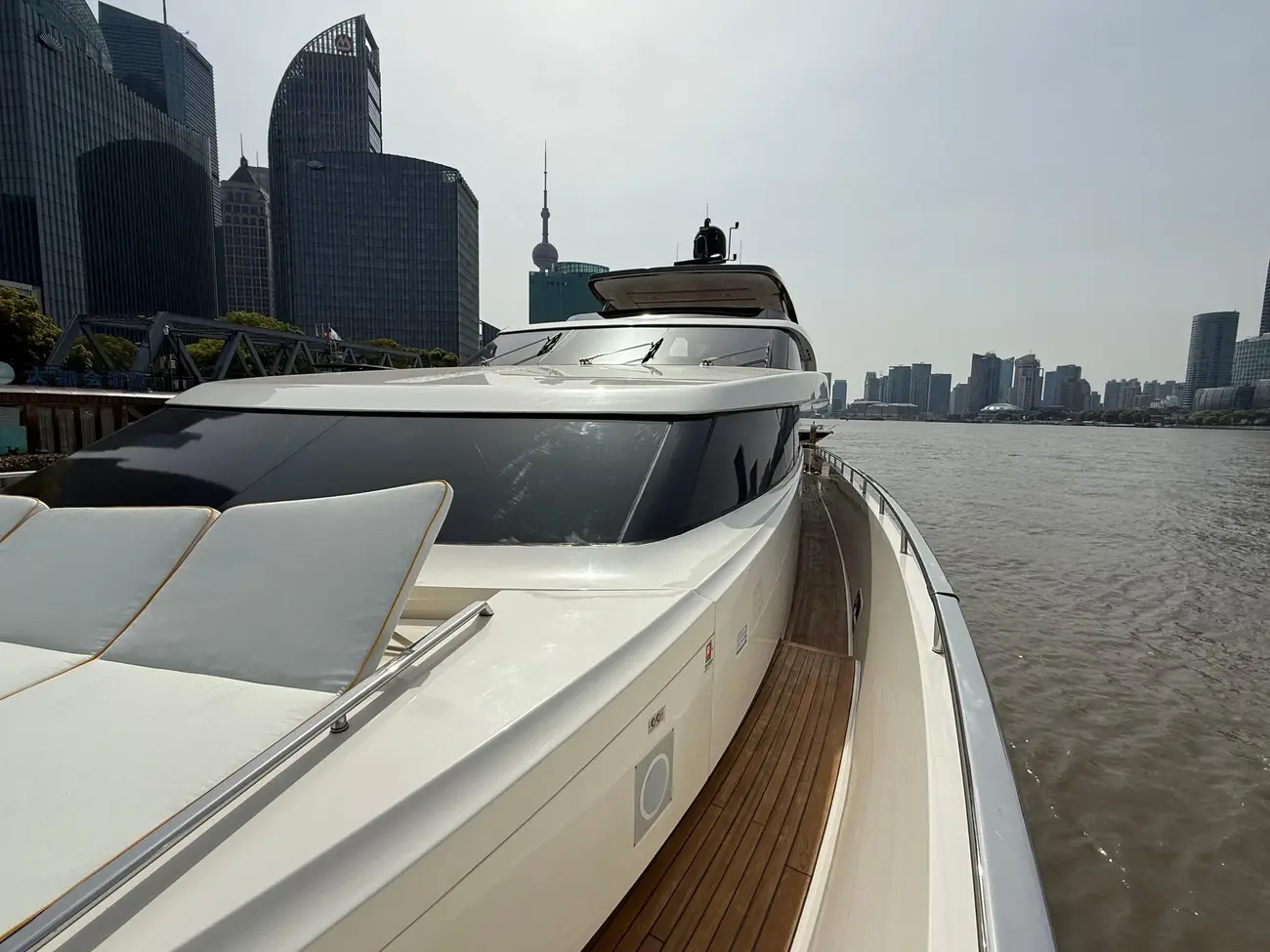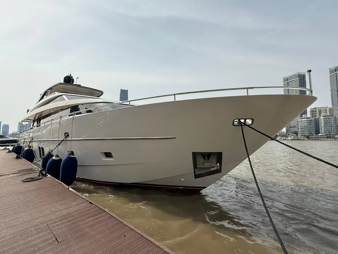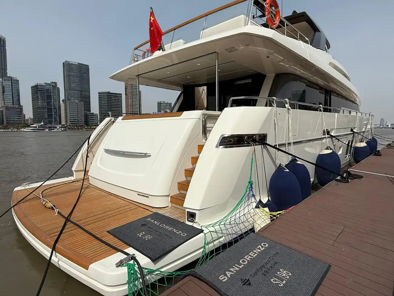 This Sanlorenzo SL96 is a 29.1m luxury flybridge motor yacht, built in GRP on a planing hull by Sanlorenzo Italian shipyard and delivered in 2014.