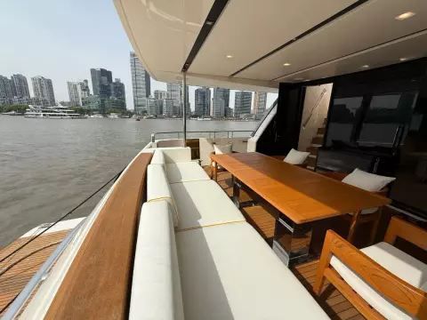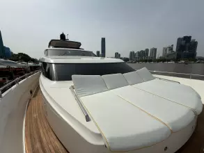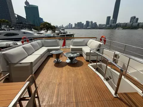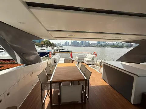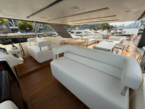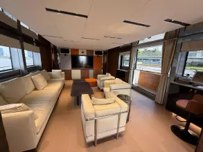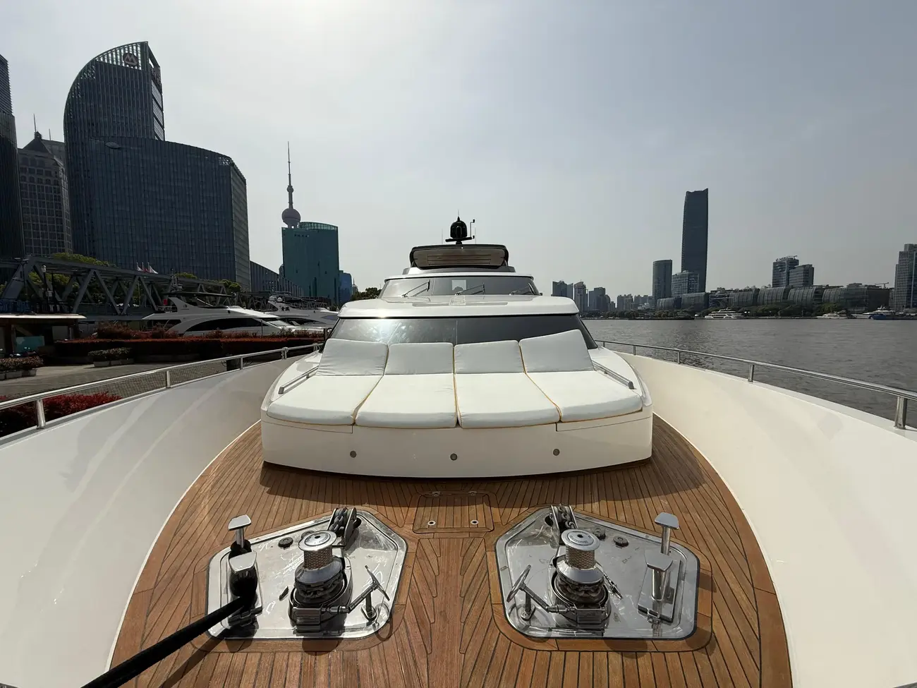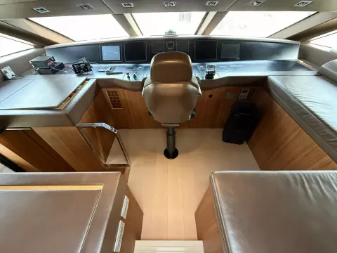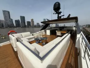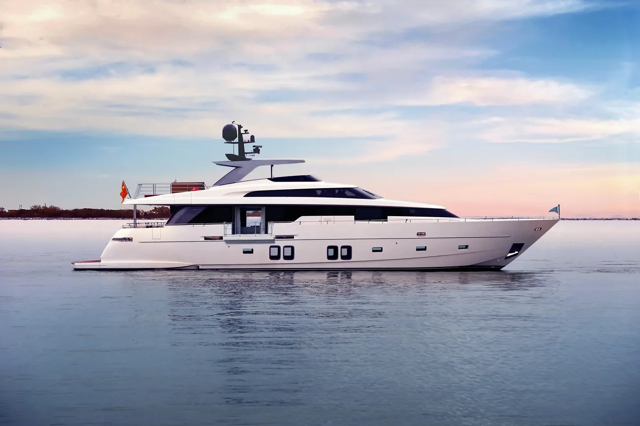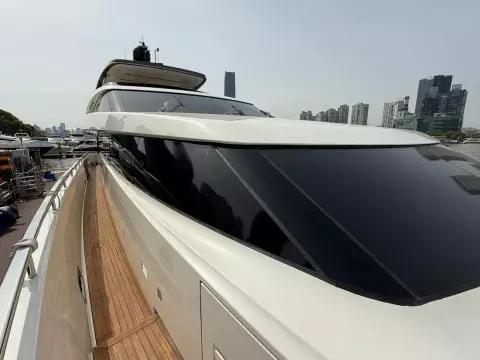 This Sanlorenzo SL96 is a 29.1m luxury flybridge motor yacht, built in GRP on a planing hull by Sanlorenzo Italian shipyard and delivered in 2014.