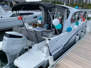 A supremely versatile boat, perfect for chilling out with friends or setting off to cruise for a few days.