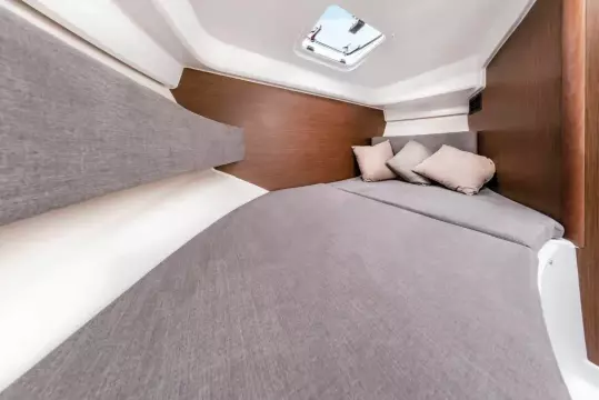 The boat has two double berths, one in the cabin and other in the wheelhouse, and can sleep up to five passengers. An extra berth can also be set up in the space under the saloon area.