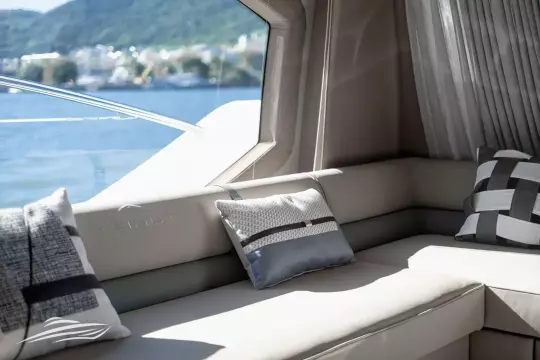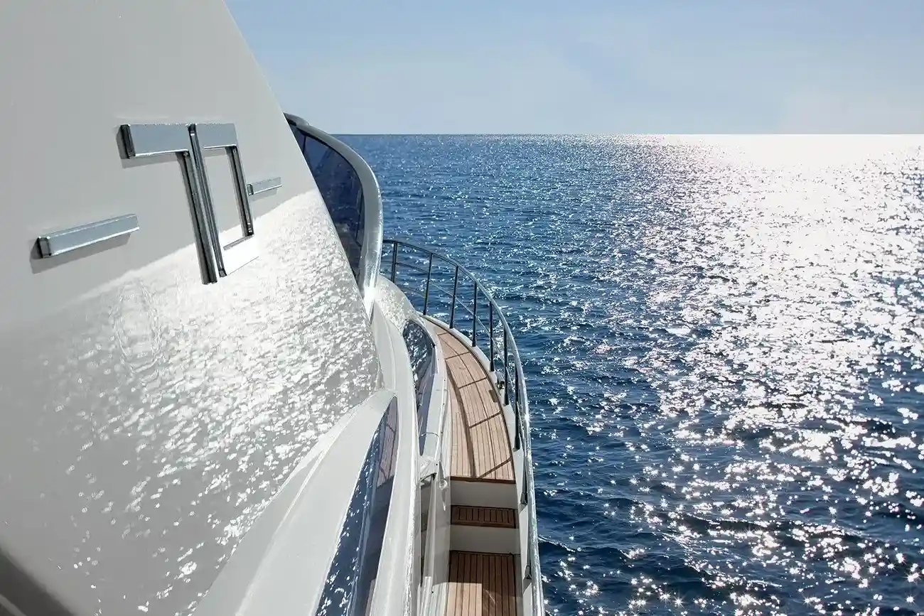 An iconic, sleek, and curvaceous profile by Stefano Righini and sophisticated interiors by Carlo Galeazzi, featuring custom wood joinery like Zebrano and luxurious finishes such as Pallisandro marble.
