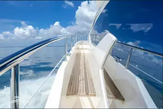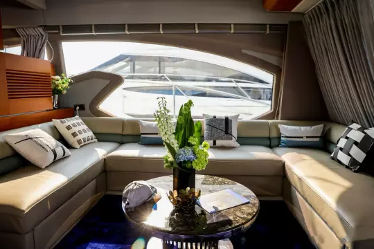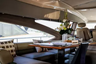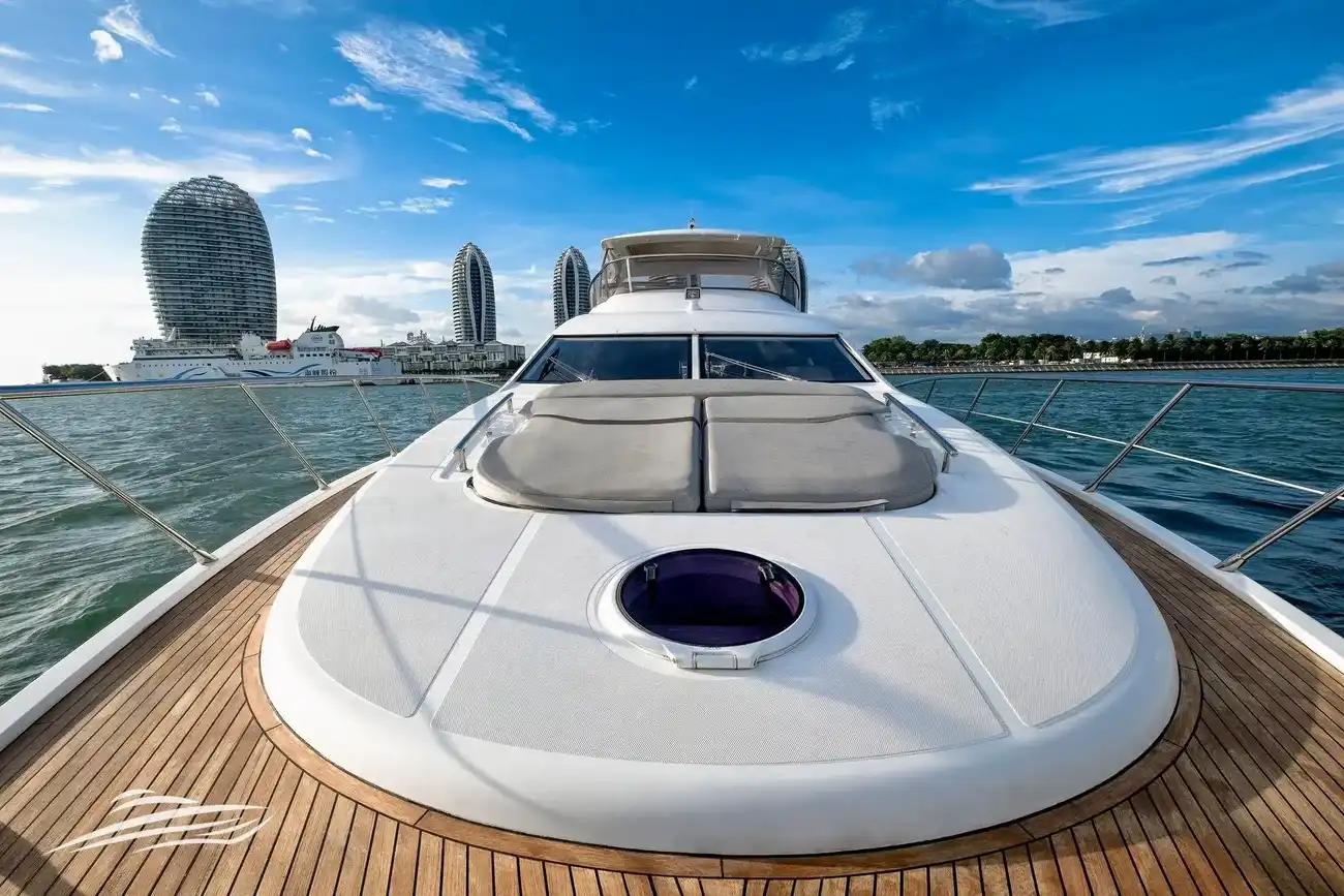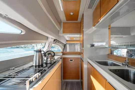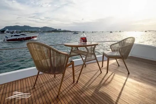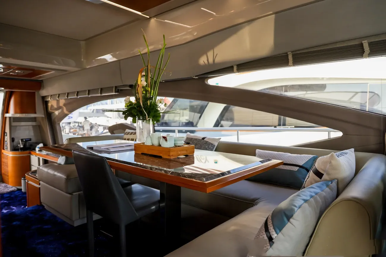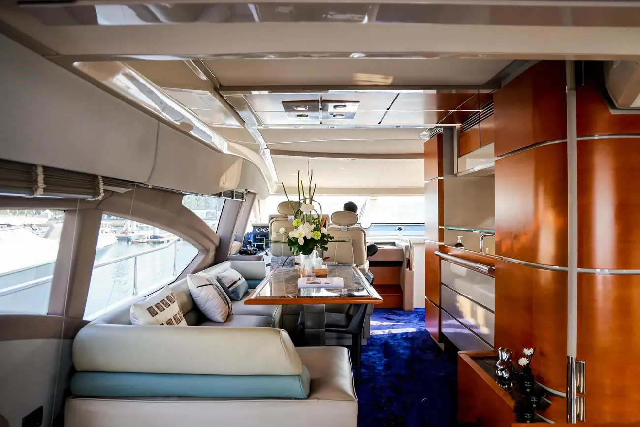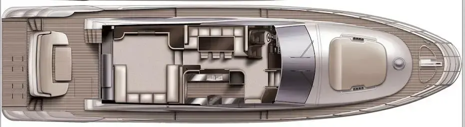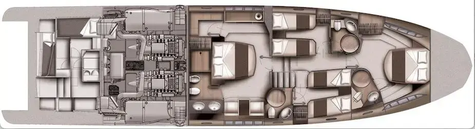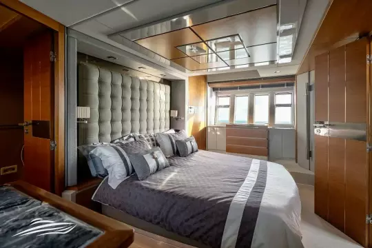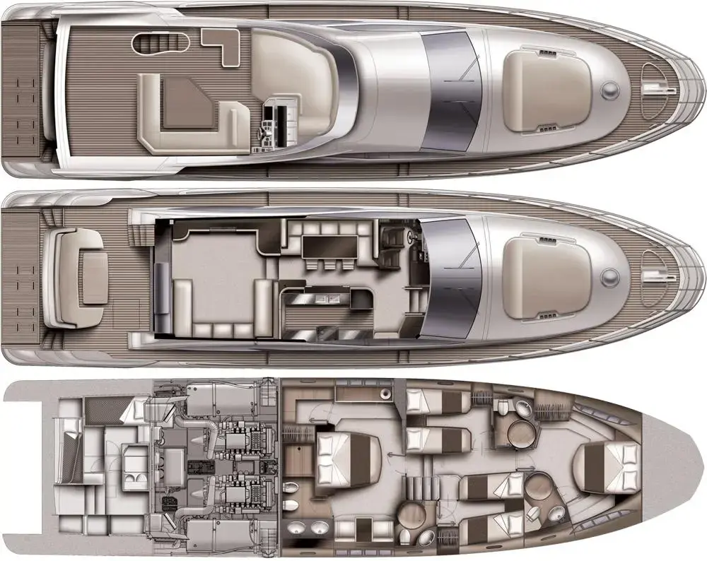 Crew Quarters: Located aft for guest privacy, providing a captain's cabin and a crew cabin with berths and dedicated AC units.