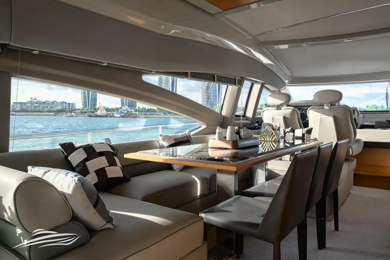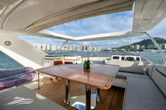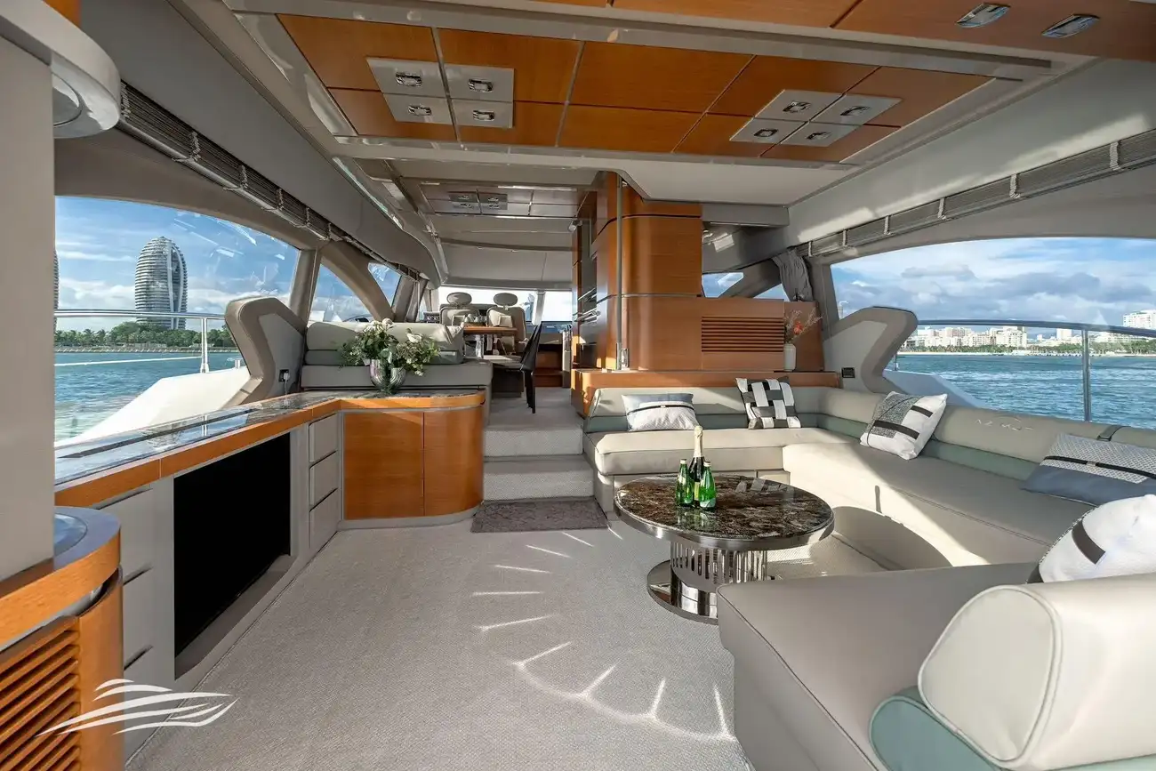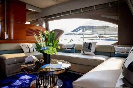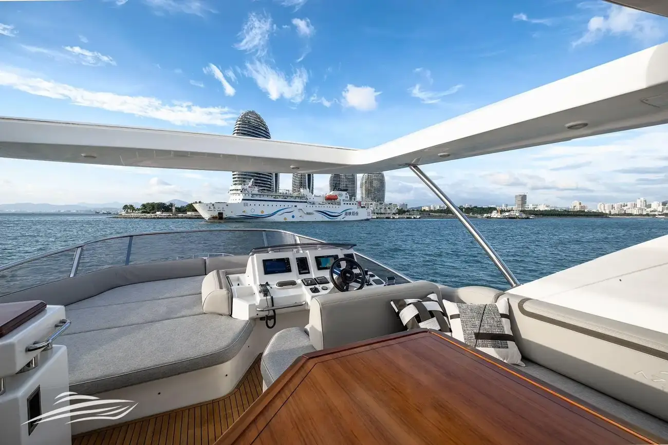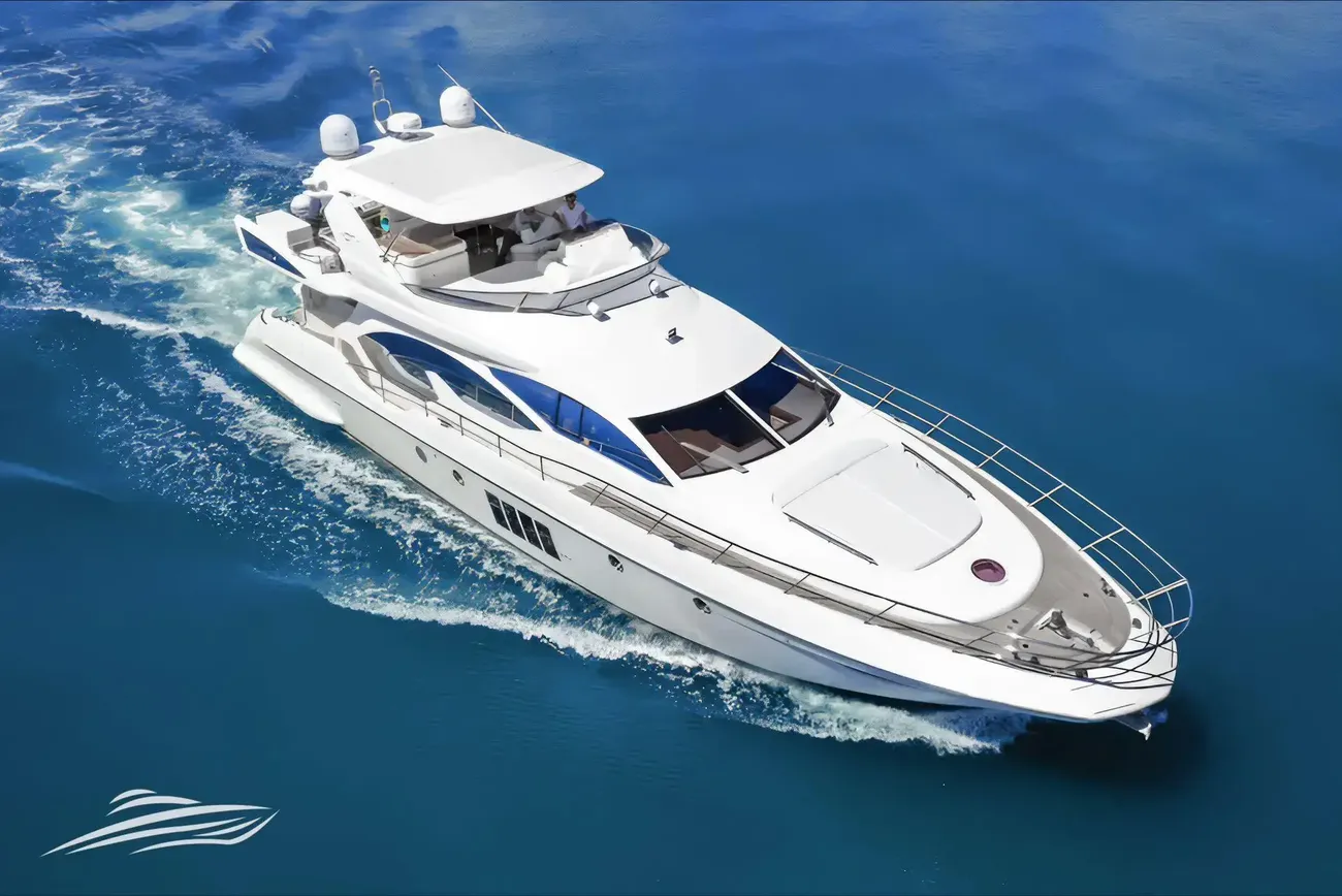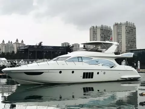 The 2014 Azimut 70 Flybridge is a luxury Italian motor yacht known for its sleek design by Stefano Righini, lavish interiors by Carlo Galeazzi, and powerful performance with twin 1360 HP MAN engines. It features a spacious four-stateroom, four-head layout with a master suite, VIP stateroom, and two guest cabins, plus dedicated crew quarters for privacy. The yacht boasts an expansive flybridge, high-tech features like Seakeeper gyro stabilizers, bow and stern thrusters, a hydraulic swim platform, and a full suite of Raymarine electronics for comfortable and stable cruising.
