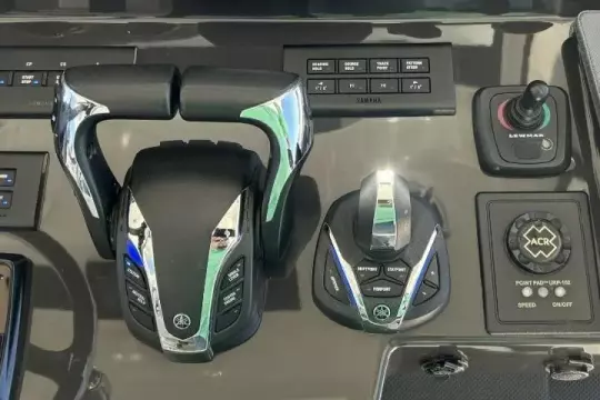- Eight Battery System: Port Engine (1), Port Center Engine (1), Starboard Center Engine (1), Starboard Engine (1), Electronics (1) (AGM), House (2) (AGM) and Bow Thruster (1) (AGM)