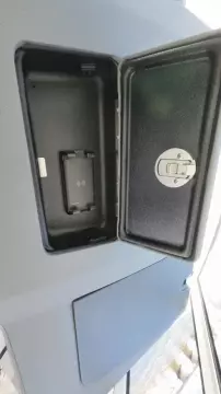 - Helm Seat Box Content: Slide-out Trash Can Access (Port Side) DC Panel and Battery Switch Access (Starboard Side)