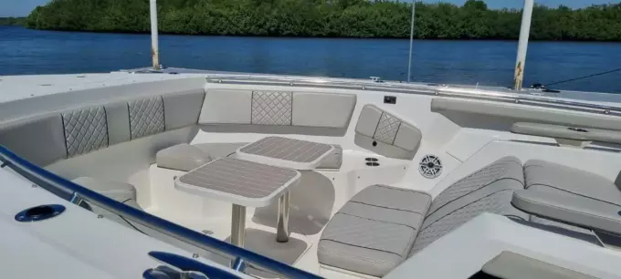 The Pursuit S428 is the flagship of the entire Pursuit line up. Pursuit designed this boat with the ability to fish, cruise and entertain in unrivaled style and comfort. With an L.O.A. of 43' 9", this grand footprint of the S428 features an abundance of rod holders, three fishboxes, ample tackle storage and bait prep areas, plus extra-large fridge and freezer boxes. There’s even an industry-first second row of powered, convertible seats under the oversized hardtop. This 2022 Pursuit 42' Center Console is located in Iconic Quepos Costa Rica, ready to join the fleet chasing billfish in the “billfish capital of the world”.